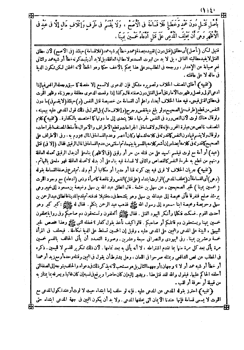 قتيل لكن ( بأصل ) أي مطلق ( قتل دون ) تقييده بصفة ( عمد وخطأ ) وشبه عمد ( فلا قسامة ) حينئذ ( في الأصح ) لأن مطلق القتل لا يفيد مطالبته القاتل بل لا بد من ثبوت العمد ولا مطالبة العاقلة بل لا بد أن يثبت كونه خطأ أو شبه عمد والثاني نعم صيانة عن الإهدار ورجحه في المطلب وعلى هذا يحكم بالأخف حكما وهو الخطأ لأنه المحقق لكن تكون الدية في ماله لا على عاقلته