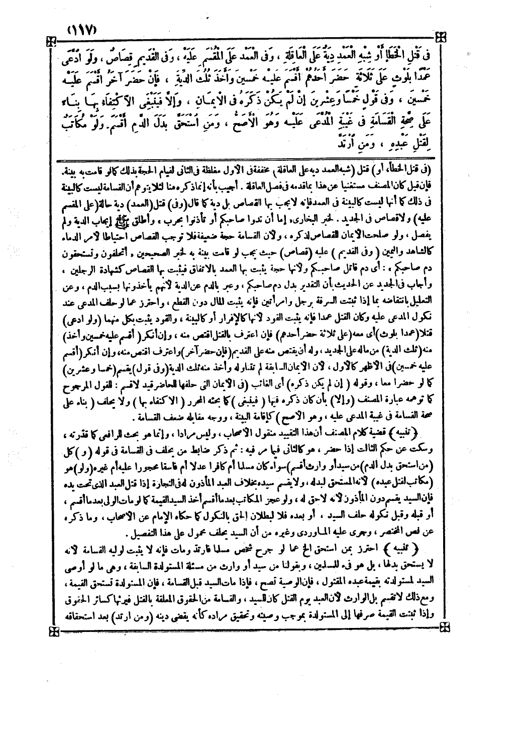 تنبيه احترز بمن استحق الخ عما لو جرح شخص مسلما فارتد ومات فإنه لا يثبت لوليه القسامة لأنه لا يستحق بدلها بل هو فيء للمسلمين وبقولنامن سيد أو وارث من مسألة المستولدة السابقة وهي ما لو أوصى السيد لمستولدته بقيمة عبده المقتول فإن الوصية تصح فإذا مات السيد قبل القسامة فإن المستولدة تستحق القيمة ومع ذلك لا تقسم بل الوارث لأن العبد يوم القتل كان للسيد والقسامة من الحقوق المعلقة بالقتل فيرثها كسائر الحقوق وإذا ثبتت القيمة صرفها إلى المستولدة بموجب وصيته وتحقيق مراده كأنه يقضي دينه