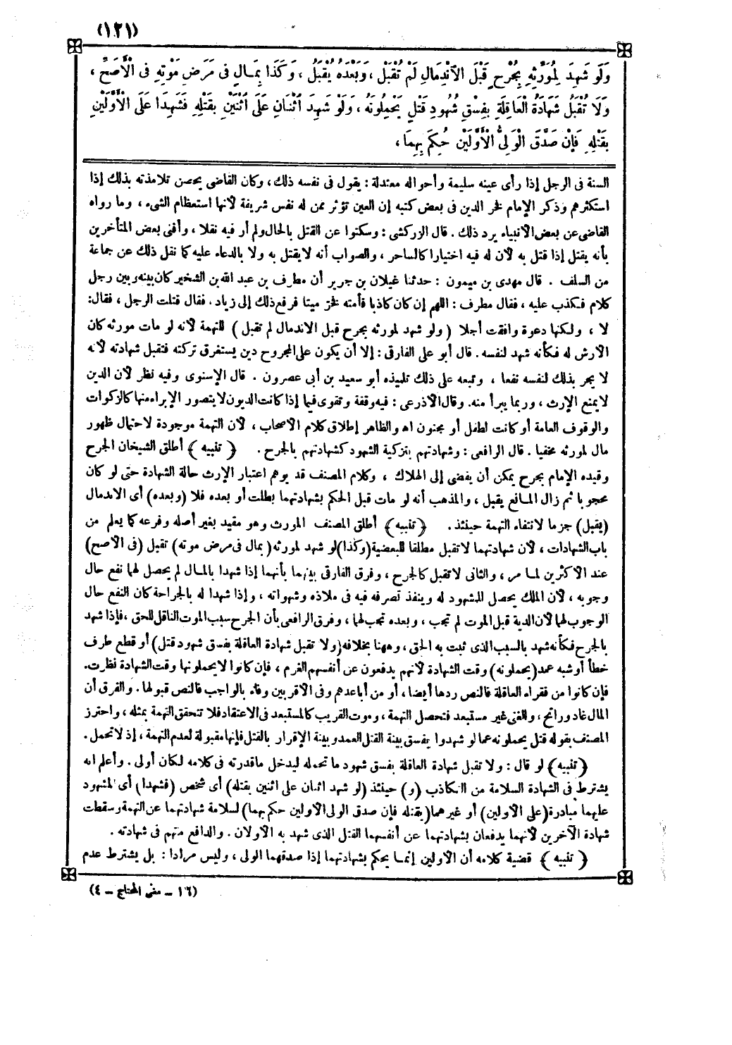 تنبيه أطلق الشيخان الجرح وقيده الإمام بجرح يمكن أن يفضي إلى الهلاك وكلام المصنف قد يوهم اعتبار الإرث حالة الشهادة حتى لو كان محجوبا ثم زال المانع يقبل والمذهب أنه لو مات قبل الحكم بشهادتهما بطلت أو بعده فلا ( وبعده ) أي الاندمال ( يقبل ) جزما لانتفاء التهمة حينئذ