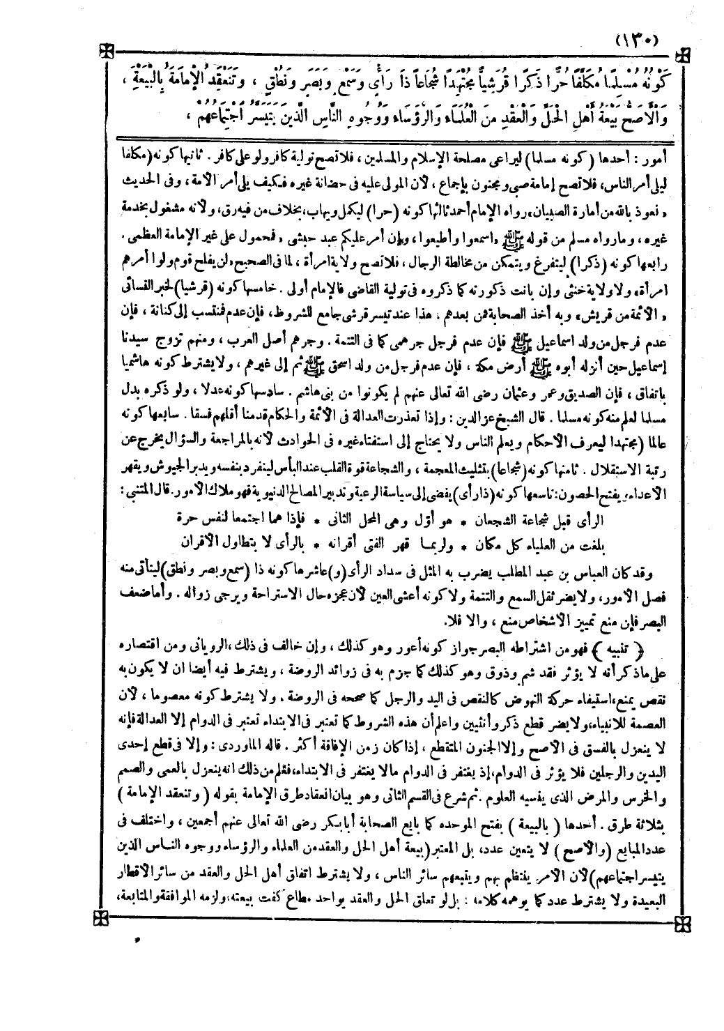 تاسعها كونه ( ذا رأي ) يفضي إلى سياسة الرعية وتدبير المصالح الدنيوية فهو ملاك الأمور