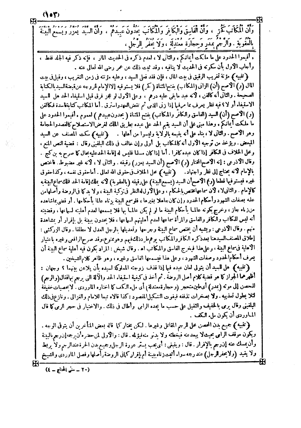 تنبيه مؤنة تغريب الرقيق في بيت المال فإن فقد فعلى السيد وعليه مؤنته في زمن التغريب وقيل في بيت المال ( و ) الأصح ( أن ) الزاني ( المكاتب ) بفتح المثناة ( كحر ) فلا يستوفيه إلا الإمام لخروجه عن قبضة السيد بالكتابة الصحيحة