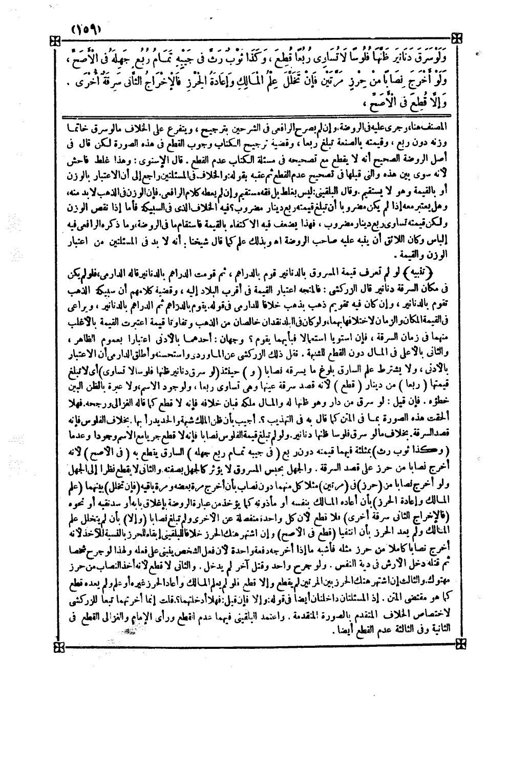 قال الإسنوي وهذا غلط فاحش لأنه سوى بين هذه والتي قبلها في تصحيح عدم القطع ثم عقبه بقوله والخلاف في المسألتين راجع إلى أن الاعتبار بالوزن أو بالقيمة وهو لا يستقيم