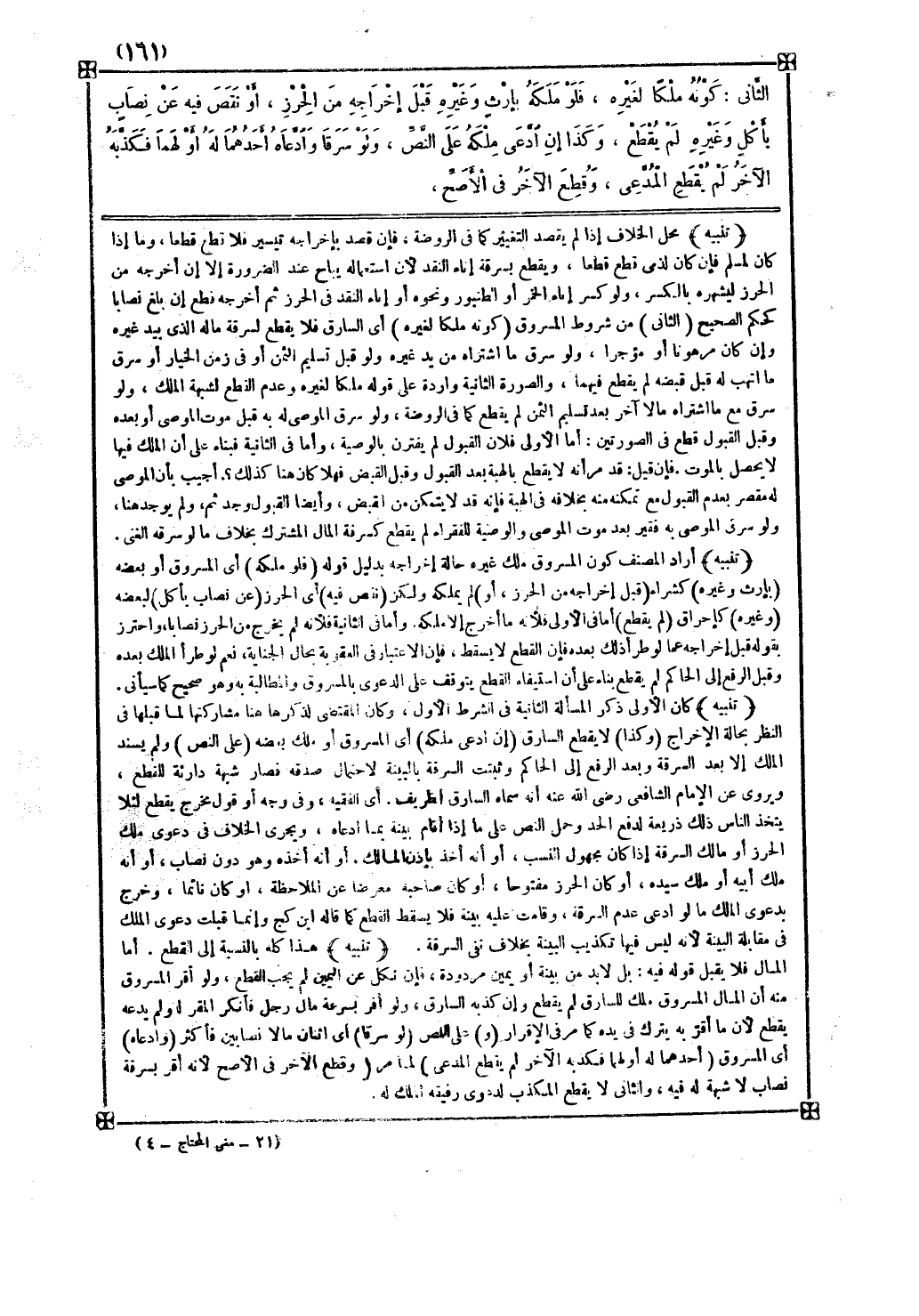 تنبيه محل الخلاف إذا لم يقصد التغيير كما في الروضة فإن قصد بإخراجه تيسير فلا قطع قطعا وما إذا كان لمسلم فإن كان لذمي قطع قطعا ويقطع بسرقة إناء النقد لأن استعماله يباح عند الضرورة إلا إن أخرجه من الحرز ليشهره بالكسر ولو كسر إناء الخمر أو الطنبور ونحوه أو إناء النقد في الحرز ثم أخرجه قطع إن بلغ نصابا كحكم الصحيح