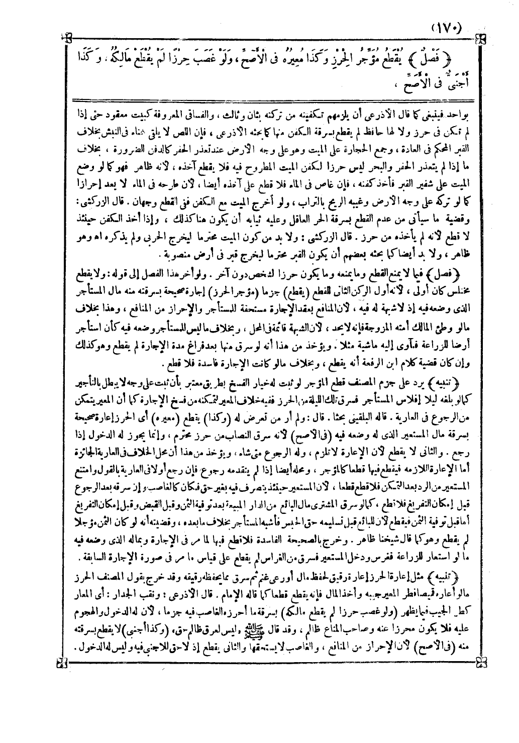 فصل فيما لا يمنع القطع وما يمنعه وما يكون حرزا لشخص دون آخر