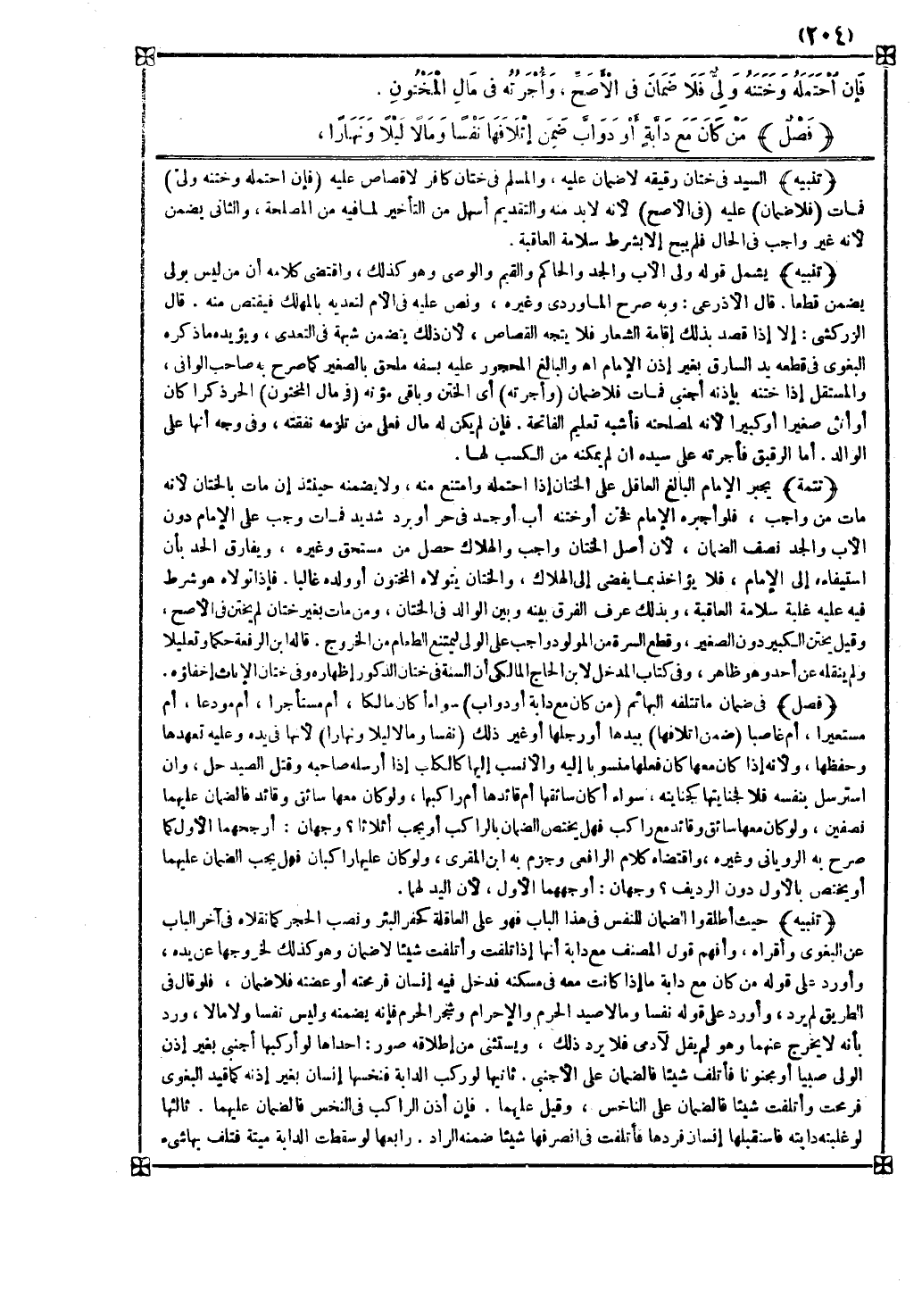 تنبيه السيد في ختان رقيقه لا ضمان عليه والمسلم في ختان كافر لا قصاص عليه