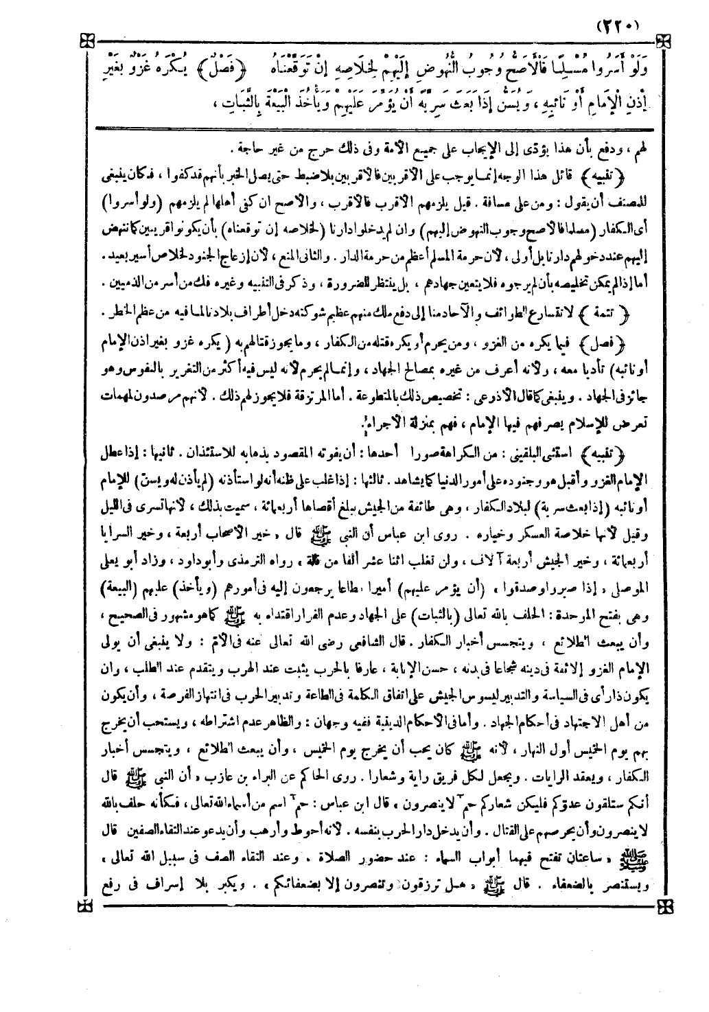 فصل فيما يكره من الغزو ومن يحرم أو يكره قتله من الكفار وما يجوز قتالهم به ( يكره غزو بغير إذن الإمام أو نائبه ) تأدبا معه ولأنه أعرف من غيره بمصالح الجهاد وإنما لم يحرم لأنه ليس فيه أكثر من التغرير بالنفوس وهو جائز في الجهاد وينبغي كما قال الأذرعي تخصيص ذلك بالمتطوعة أما المرتزقة فلا يجوز لهم ذلك لأنهم مرصدون لمهمات تعرض للإسلام يصرفهم فيها الإمام فهم بمنزلة الأجراء
