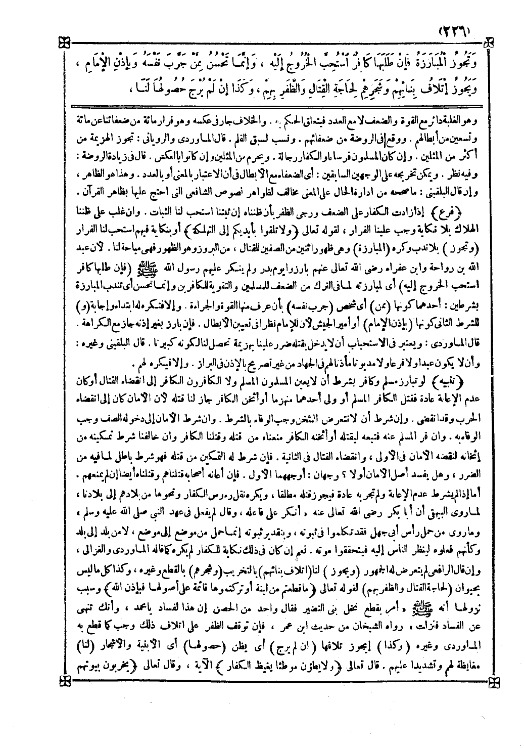 قال الماوردي ويعتبر في الاستحباب أن لا يدخل بقتله ضرر علينا بهزيمة تحصل لنا لكونه كبيرنا