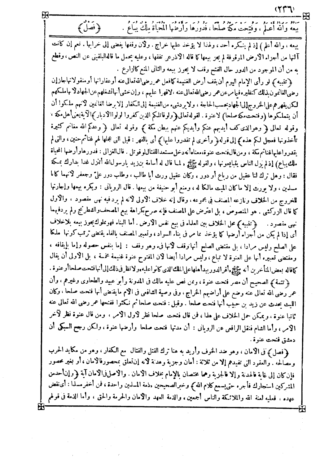 تتمة الصحيح أن مصر فتحت عنوة وممن نص عليه مالك في المدونة وأبو عبيد والطحاوي وغيرهم وأن عمر رضي الله تعالى عنه وضع على أراضيهم الخراج وفي وصية الشافعي في الأم ما يقتضى أنها فتحت صلحا وكان الليث يحدث عن زيد بن حبيب أنها فتحت صلحا