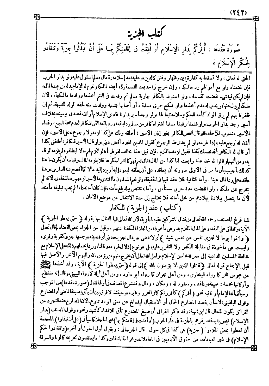وأما الثانية فلا عقد فيها في الحقيقة ولو غنم المسلمون ما افتدى به الأسير لزمهم رده للمفادى لأنه لم يخرج عن ملكه ولو انقضت مدة حربي مستأمن وأمانه مختص ببلد بلغ مأمنه فإن كان أمانه عاما لم يجب تبليغه مأمنه لأن ما يتصل ببلادنا ببلادهم من محل أمانه فلا يحتاج إلى مدة الانتقال من موضع الأمان كتاب عقد الجزية للكفار لما فرغ المصنف رحمه الله تعالى من قتال المشركين عقبه بالجزية لأن الله تعالى غيا القتال بها بقوله { حتى يعطوا الجزية } الآية وتطلق على العقد وعلى المال الملتزم به وهي مأخوذة من المجازاة لكفنا عنهم وقيل من الجزاء بمعنى القضاء