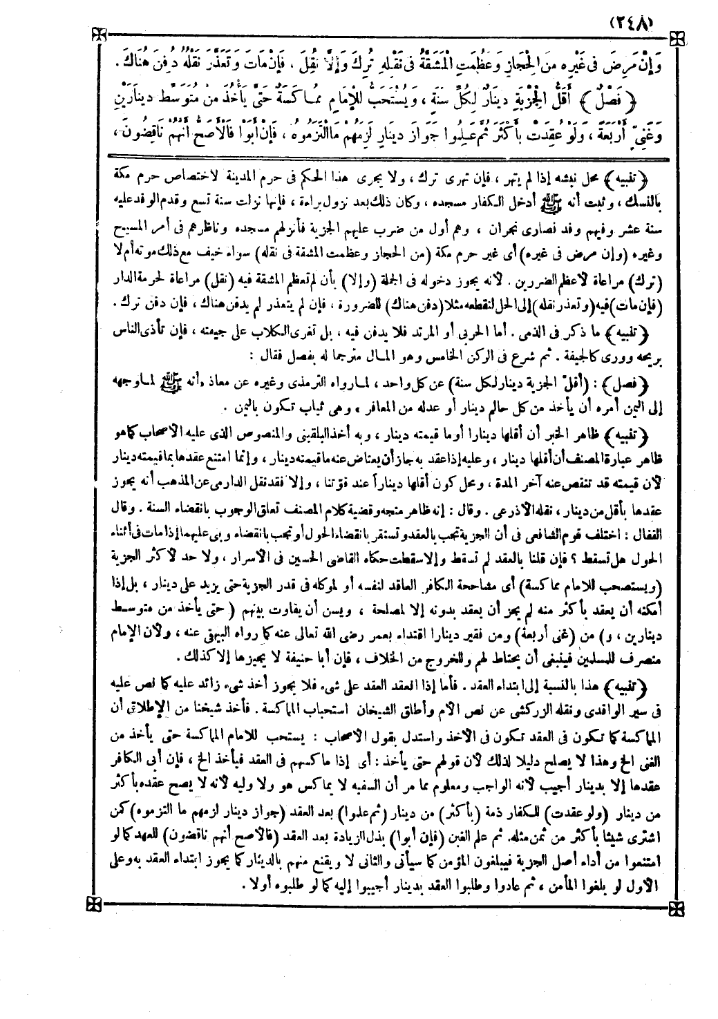 تنبيه هذا بالنسبة إلى ابتداء العقد فأما إذا انعقد العقد على شيء فلا يجوز أخذ شيء زائد عليه كما نص عليه في سير الواقدي ونقله الزركشي عن نص الأم وأطلق الشيخان استحباب المماكسة فأخذ شيخنا من الإطلاق أن المماكسة كما تكون في العقد تكون في الأخذ واستدل بقول الأصحاب يستحب للإمام المماكسة حتى يأخذ من الغنى إلخ وهذا لا يصلح دليلا لذلك لأن قولهم حتى يأخذ أي إذا ماكسهم في العقد فيأخذ إلخ فإن أبى الكافر عقدها إلا بدينار أجيب لأنه الواجب ومعلوم مما مر أن السفيه لا يماكس هو ولا وليه لأنه لا يصح عقده بأكثر من دينار