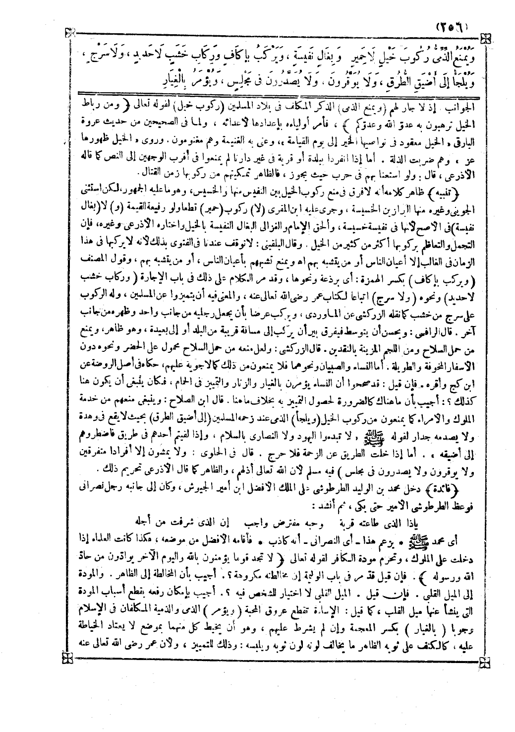 وقال البلقيني لا توقف عندنا في الفتوى بذلك لأنه لا يركبها في هذا الزمان في الغالب إلا أعيان الناس أو من يتشبه بهم اه