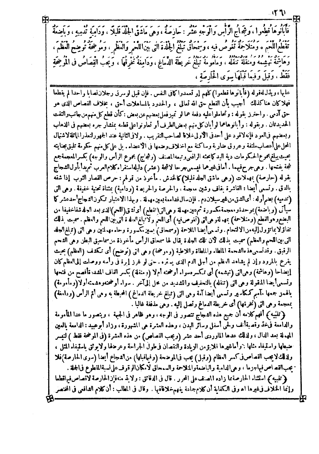 وبهذا الاعتبار تكون الشجاج أحد عشر كما سيأتي ( وباضعة ) بموحدة ومعجمة مكسورة ثم عين مهملة وهي التي ( تقطع ) أي تشق ( اللحم ) الذي بعد الجلد شقا خفيفا من البضع وهو القطع ( ومتلاحمة ) بمهملة وهي التي ( تغوص فيه ) أي اللحم ولا تبلغ الجلدة التي بين اللحم والعظم