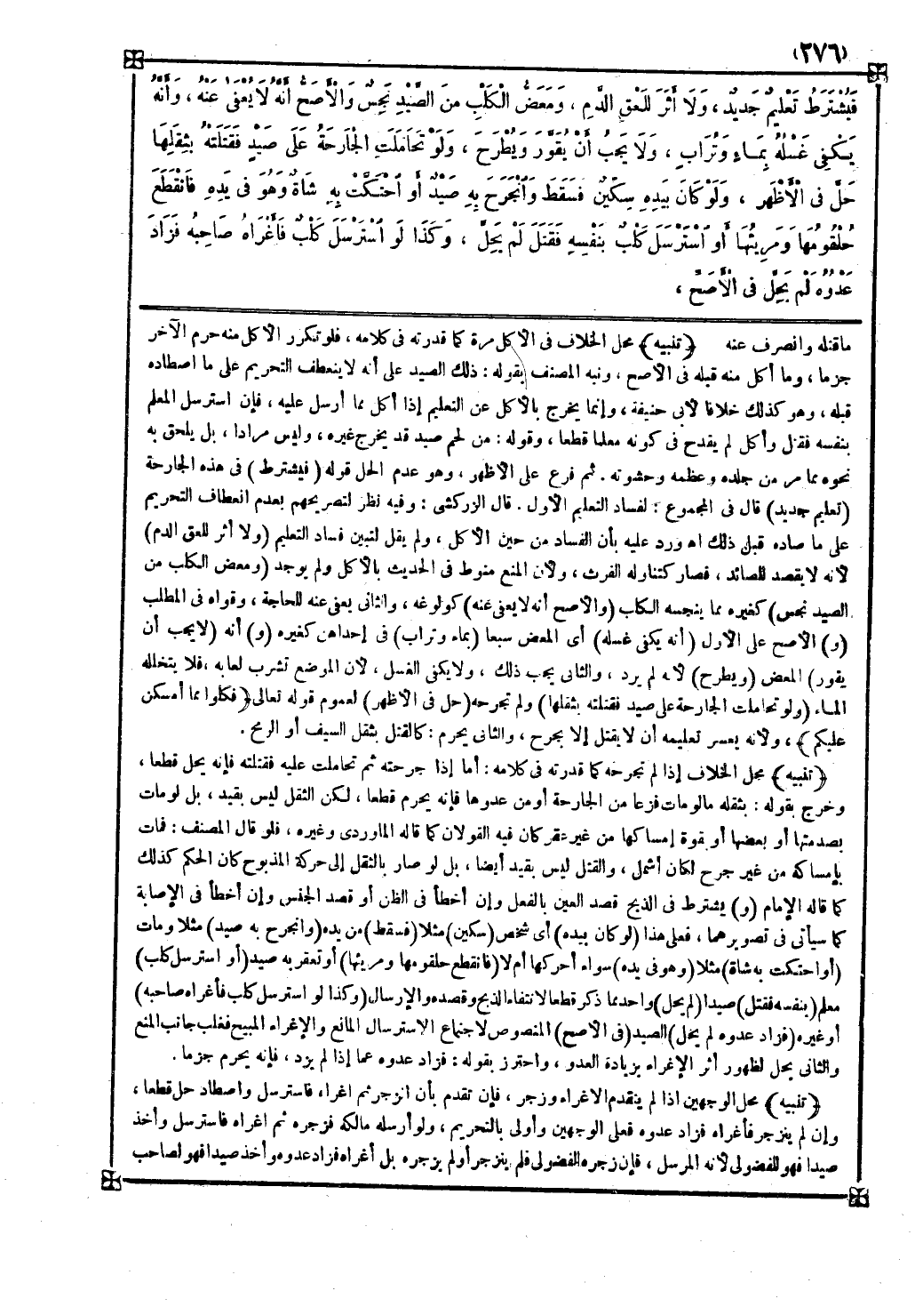 قال الزركشي وفيه نظر لتصريحهم بعد انعطاف التحريم على ما صاده قبل ذلك اه