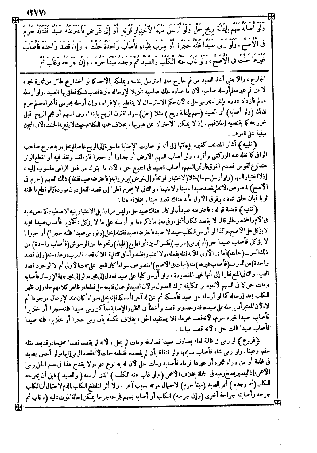 تنبيه قضية قوله فاعترضه صيد أنه لو كان هناك صيد حل وليس مرادا بل الاعتبار بنية الاصطياد كما نص عليه في الأم والمختصر