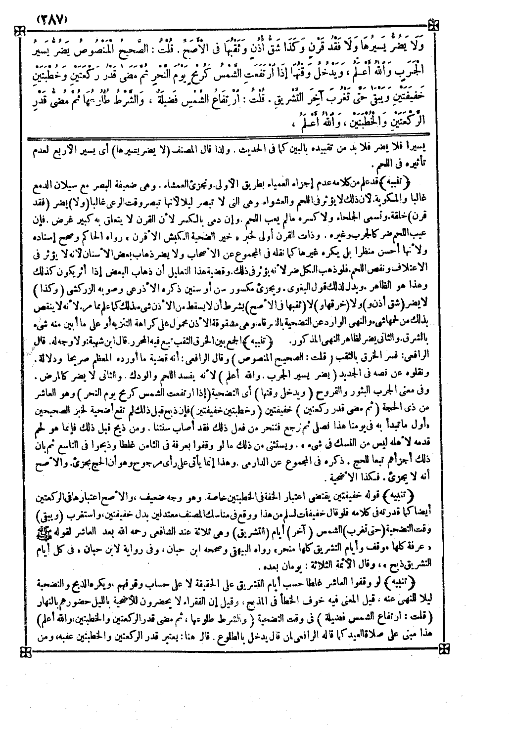 ( قلت ارتفاع الشمس فضيلة ) في وقت التضحية ( والشرط طلوعها ثم مضي قدر الركعتين والخطبتين والله أعلم ) هذا مبني على صلاة العيد كما قاله الرافعي لمن قال يدخل بالطلوع