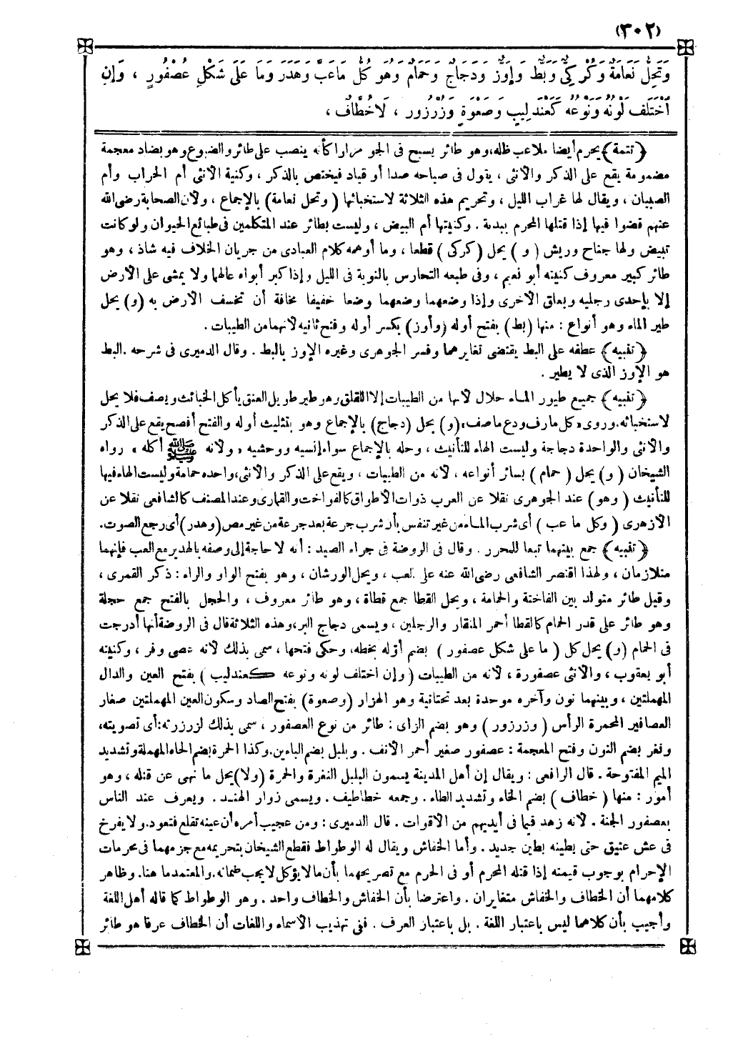 تنبيه جميع طيور الماء حلال لأنها من الطيبات إلا اللقلق وهو طير طويل العنق يأكل الخبائث ويصف فلا يحل لاستخباثه