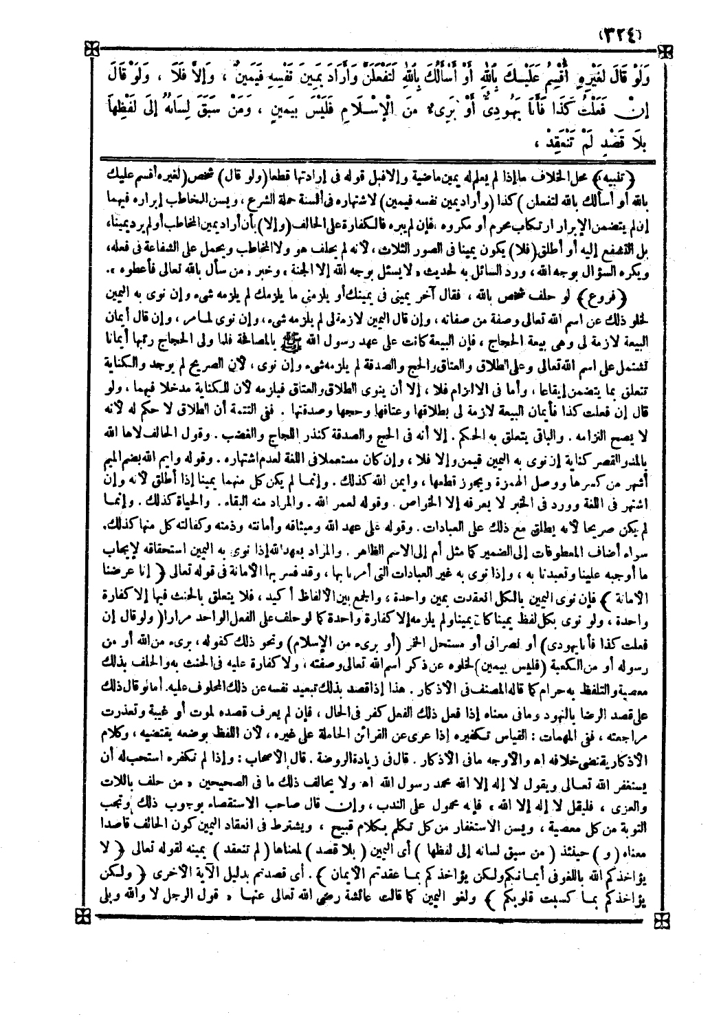 ( ولو قال إن فعلت كذا فأنا يهودي ) أو نصراني أو مستحل الخمر ( أو بريء من الإسلام ) ونحو ذلك كقوله بريء من الله أو من رسوله أو من الكعبة ( فليس بيمين ) لخلوه عن ذكر اسم الله تعالى وصفته ولا كفارة عليه في الحنث به والحلف بذلك معصية والتلفظ به حرام كما قاله المصنف في الأذكار هذا إذا قصد بذلك تبعيد نفسه عن ذلك المحلوف عليه أما لو قال ذلك على قصد الرضا بالتهود وما في معناه إذا فعل ذلك الفعل كفر في الحال فإن لم يعرف قصده لموت أو غيبة وتعذرت مراجعته ففي المهمات القياس تكفيره إذا عري عن القرائن الحاملة على غيره لأن اللفظ بوضعه يقتضيه وكلام الأذكار يقتضي خلافه اه
