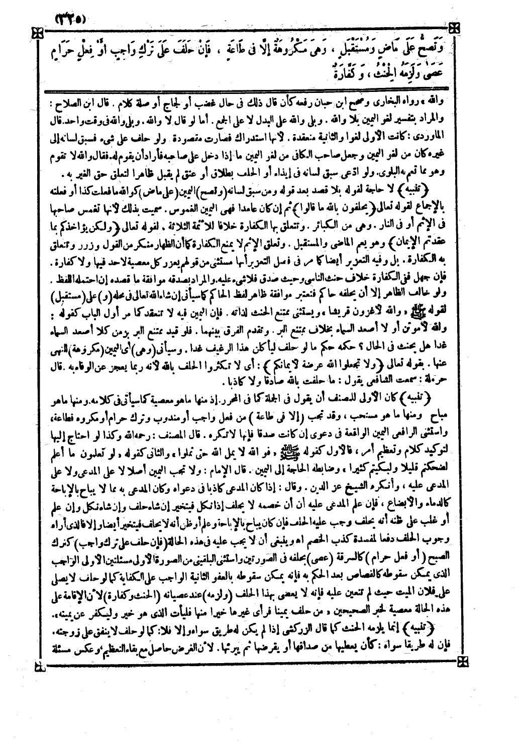 تنبيه إنما يلزمه الحنث كما قال الزركشي إذا لم يكن له طريق سواه وإلا فلا كما لو حلف لا ينفق على زوجته فإن له طريقا سواه كأن يعطيها من صداقها أو يقرضها ثم يبرئها لأن الغرض حاصل مع بقاء التعظيم وعصى بالحنث وعليه به الكفارة