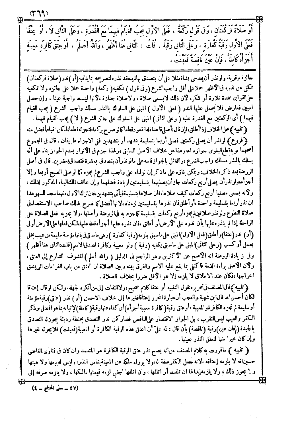 ( أو ) نذر ( عتقا ) وأطلق ( فعلى الأول ) المبني على ما سبق يلزمه ( رقبة كفارة ) وهي ما سبق بأنها مؤمنة سليمة من عيب يخل بعمل أو كسب ( وعلى الثاني ) المبني على ما سبق يكفيه ( رقبة ) ولو معيبة وكافرة لصدق الاسم ( قلت الثاني هنا أظهر ) وفي زيادة الروضة أنه الأصح عن الأكثرين وهو الراجح في الدليل ( والله أعلم ) لتشوف الشارع إلى العتق ولأن الأصل براءة الذمة فاكتفى بما يقع عليه الاسم والفرق بينه وبين الصلاة أن العتق من باب الغرامات التي يشق إخراجها فكان عند الإطلاق لا يلزمه إلا هو الأقل ضررا بخلاف الصلاة