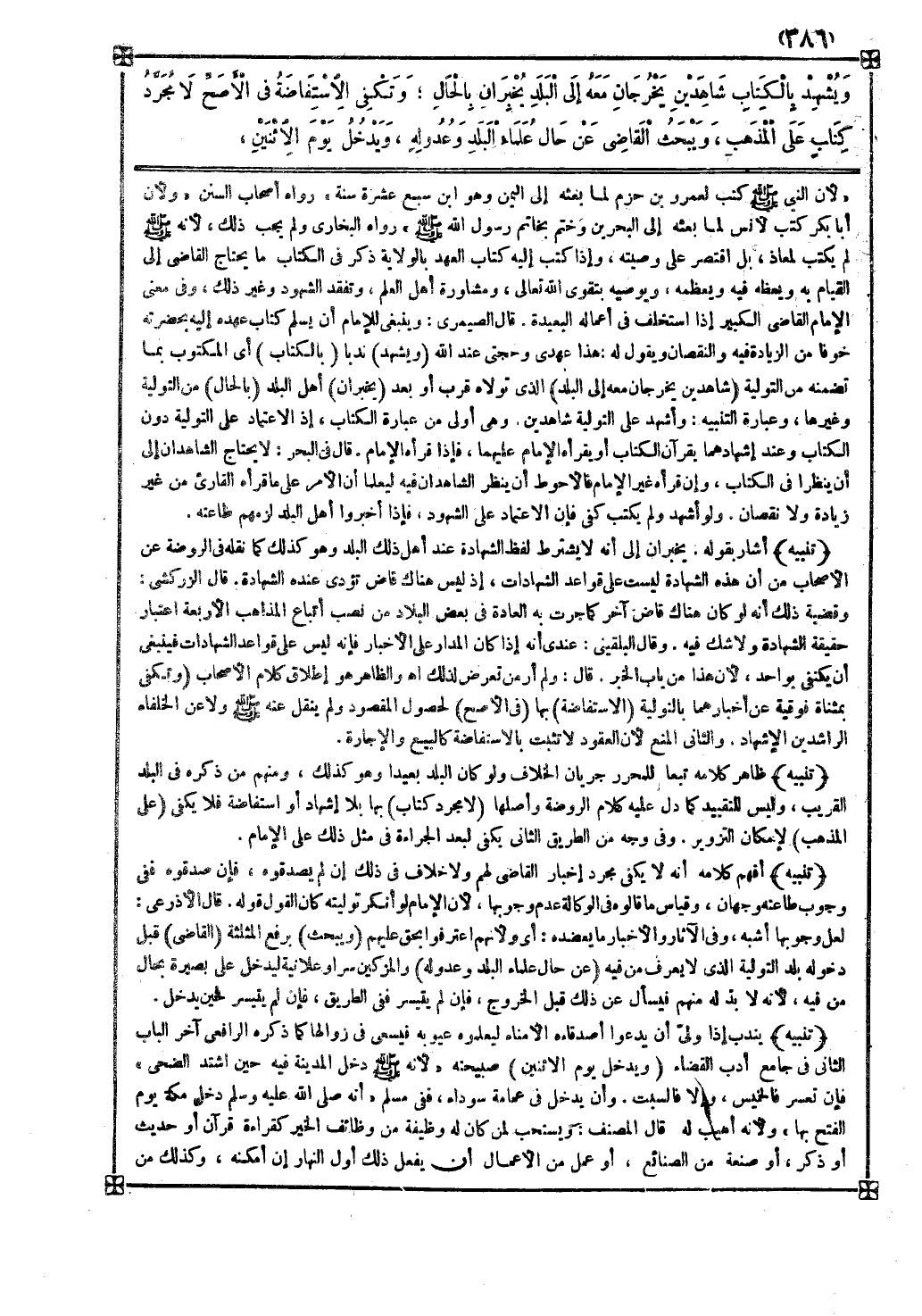 ( ويشهد ) ندبا ( بالكتاب ) أي المكتوب بما تضمنه من التولية ( شاهدين يخرجان معه إلى البلد ) الذي تولاه قرب أو بعد ( يخبران ) أهل البلد ( بالحال ) من التولية وغيرها وعبارة التنبيه وأشهد على التولية شاهدين وهي أولى من عبارة الكتاب إذ الاعتماد على التولية دون الكتاب