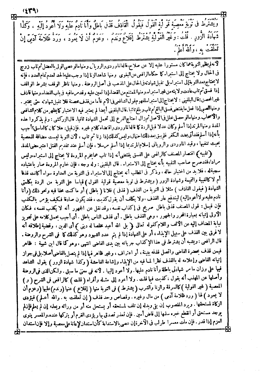 ومنها شاهد الزنا إذا وجب عليه الحد لعدم تمام العدد فإنه لا يحتاج بعد التوبة إلى استبراء بل تقبل شهادته في الحال على المذهب في أصل الروضة