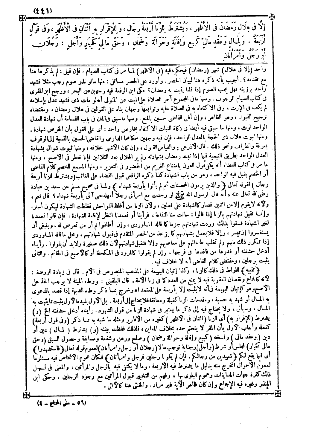 ومنها ثبوت هلال ذي الحجة بالعدل الواحد فإن فيه وجهين حكاهما الدارمي و القاضي الحسين بالنسبة إلى الوقوف بعرفة والطواف ونحو ذلك قال الأذرعي والقياس القبول وإن كان الأشهر خلافه