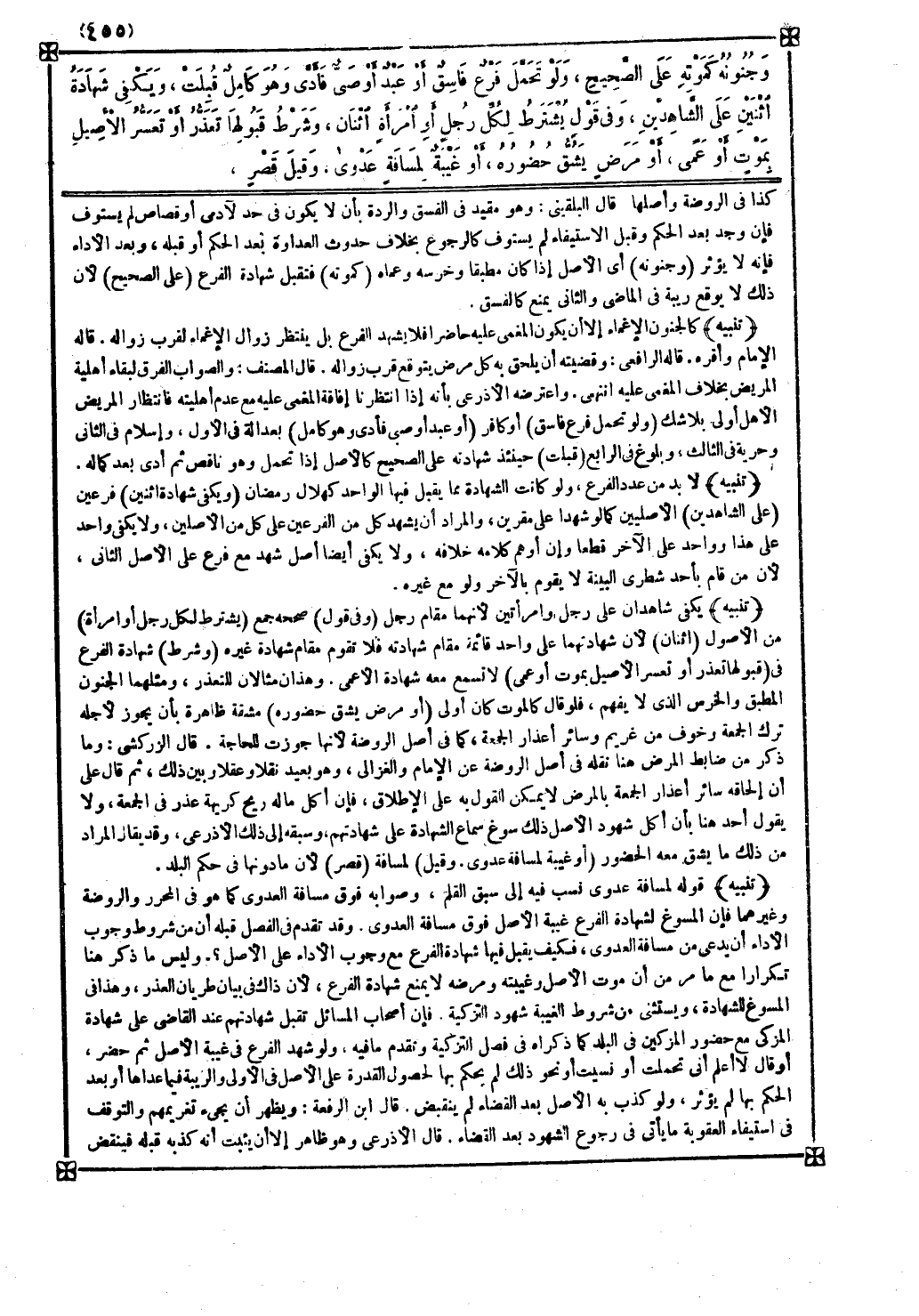 تنبيه قوله لمسافة عدوى نسب فيه إلى سبق القلم وصوابه فوق مسافة العدوى كما هو في المحرر والروضة وغيرهما فإن المسوغ لشهادة الفرع غيبة الأصل فوق مسافة العدوى