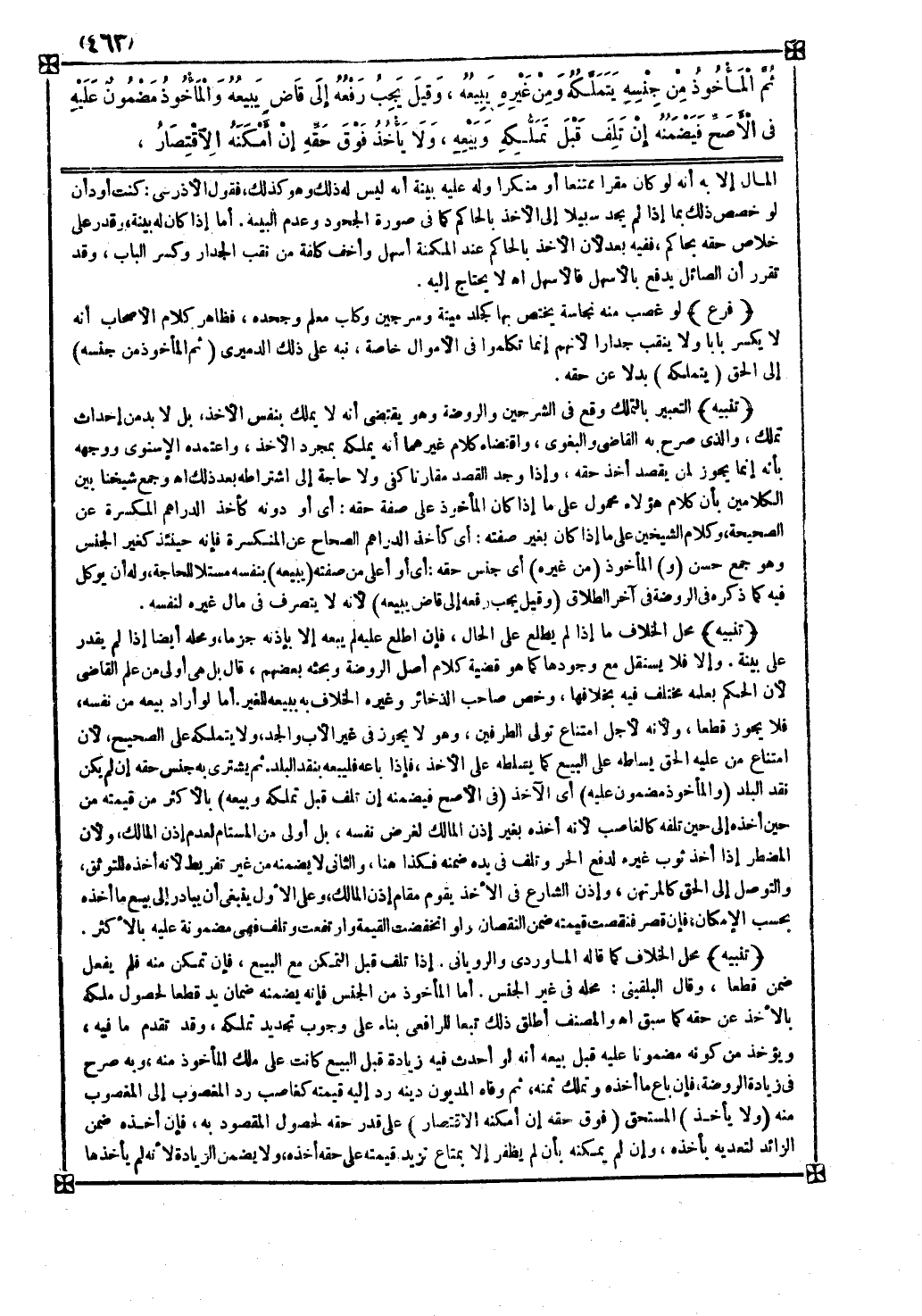 وقال البلقيني محله في غير الجنس أما المأخوذ من الجنس فإنه يضمنه ضمان يد قطعا لحصول ملكه بالأخذ عن حقه كما سبق اه