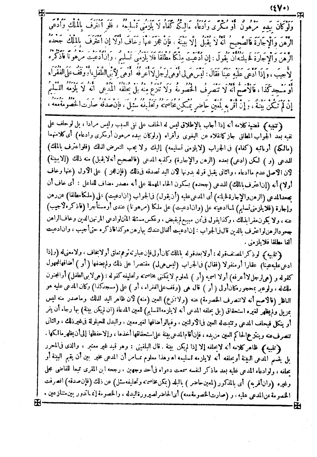 ( ولو كان بيده مرهون أو مكرى وادعاه ) أي كلا منهما ( مالكه ) أو نائبه ( كفاه ) في الجواب ( لا يلزمني تسليمه ) إليك ولا يجب التعرض للملك ( فلو اعترف بالملك ) للمدعي ( و ) لكن ( ادعى ) بعده ( الرهن والإجارة ) وكذبه المدعي ( فالصحيح أنه لا يقبل ) منه ذلك ( إلا ببينة ) لأن الأصل عدم ما ادعاه