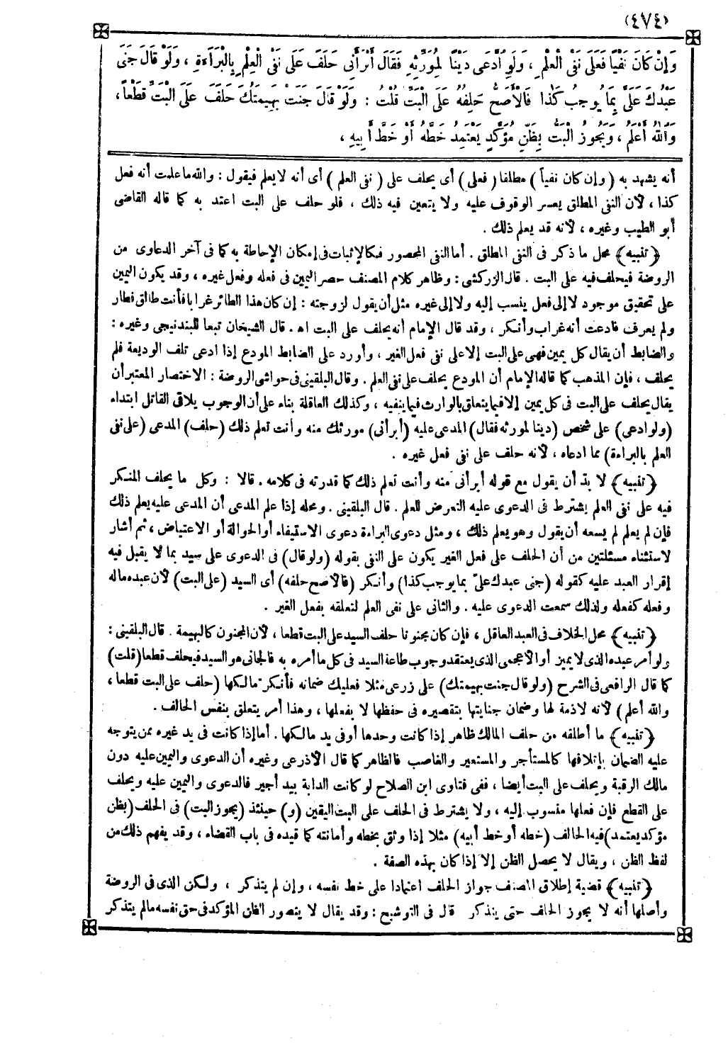 تنبيه محل ما ذكر في النفي المطلق أما النفي المحصور فكالإثبات في إمكان الإحاطة به كما في آخر الدعاوى من الروضة فيحلف فيه على البت
