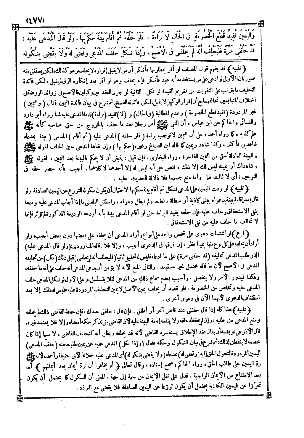 ثم شرع في بيان فائدة اليمين فقال ( واليمين ) غير المردودة ( تفيد قطع الخصومة ) وعدم المطالبة ( في الحال ) و ( لا ) تفيد ( براءة ) لذمة المدعى عليه لما رواه أبو دواد والنسائي والحاكم عن ابن عباس أن النبي صلى الله عليه وسلم أمر رجلا بعد ما حلف بالخروج من حق صاحبه كأنه صلى الله عليه وسلم علم كذبه كما رواه أحمد