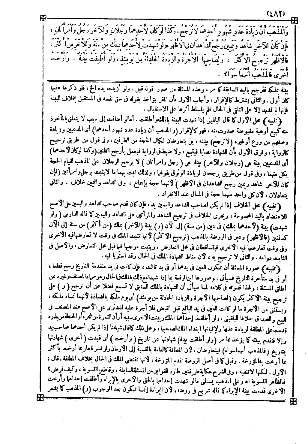 ( والمذهب أن زيادة عدد شهود أحدهما ) أي المدعيين وزيادة وصفهم من ورع أو غيره ( لا ترجح ) بينته بل يتعارضان لكمال الحجة من الطرفين وفي قول من طريق ترجيح كالرواية