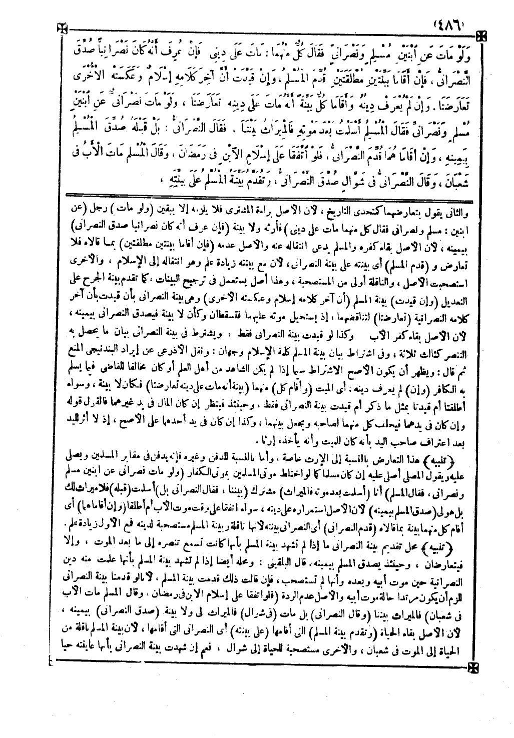 ( وتقدم بينة المسلم ) التي أقامها ( على بينته ) أي النصراني التي أقامها لأن بينة المسلم ناقلة من الحياة إلى الموت في شعبان والأخرى مستصحبة للحياة إلى شوال