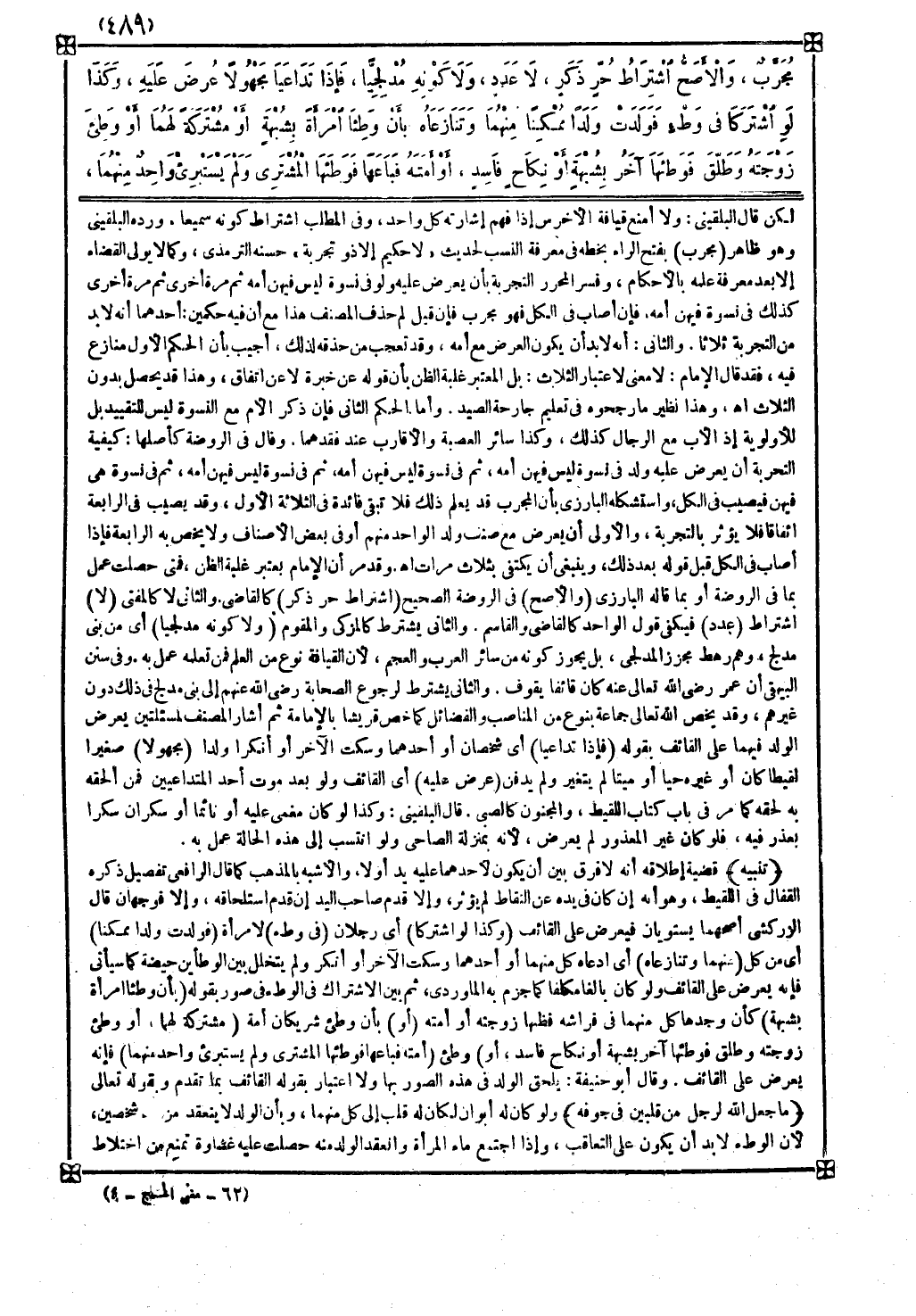 والثاني يشترط لرجوع الصحابة رضي الله عنهم إلى بني مدلج في ذلك دون غيرهم وقد خص الله تعالى جماعة بنوع من المناصب والفضائل كما خص قريشا بالإمامة