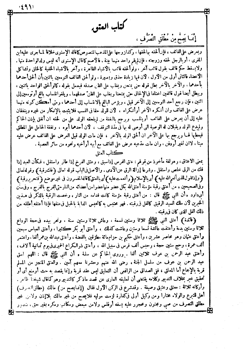فائدة أعتق النبي صلى الله عليه وسلم ثلاثا وستين نسمة وعاش ثلاثا وستين سنة ونحر بيده في حجة الوداع ثلاثا وستين بدنة وأعتقت عائشة تسعا وستين وعاشت كذلك وأعتق أبو بكر كثيرا وأعتق العباس سبعين وأعتق عثمان وهو محاصر عشرين وأعتق حكيم بن حزام مائة مطوقين بالفضة وأعتق عبد الله بن عمر ألفا واعتمر ألف عمرة وحج ستين حجة وحبس ألف فرس في سبيل الله وأعتق ذو الكراع الحميري في يوم ثمانية آلاف وأعتق عبد الرحمن بن عوف ثلاثين ألفا