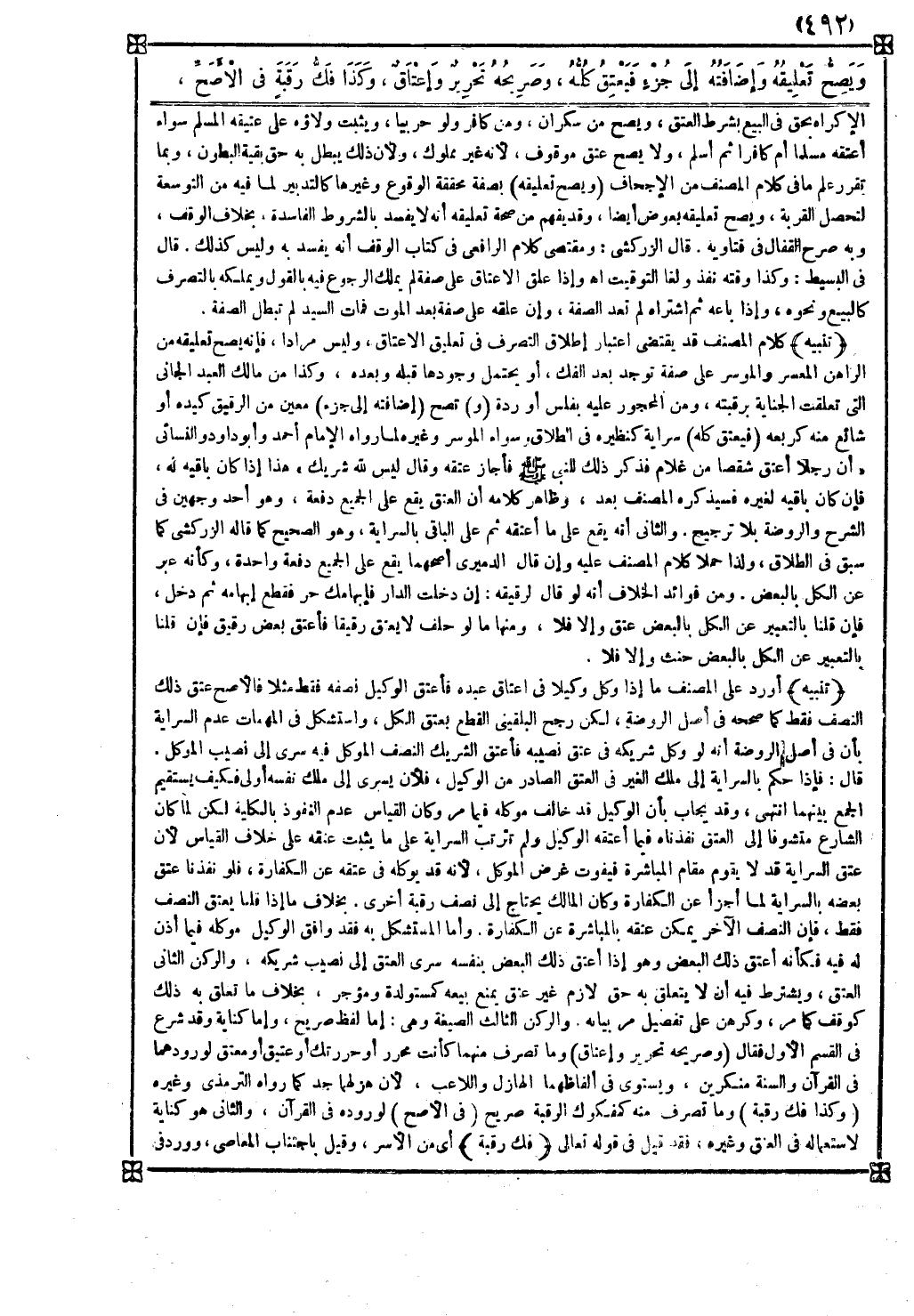 تنبيه أورد على المصنف ما إذا وكل وكيلا في إعتاق عبده فأعتق الوكيل نصفه فقط مثلا فالأصح عتق ذلك النصف فقط كما صححه في أصل الروضة لكن رجح البلقيني القطع بعتق الكل