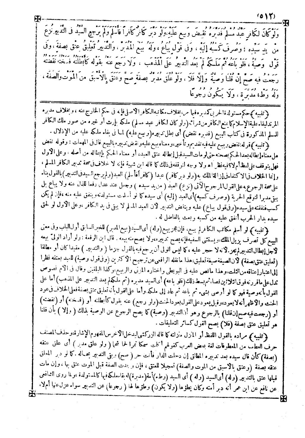 ولا وجه لتوقفه في ذلك كما قاله ابن شهبة فإنه لا خلاف في صحة تدبير الكافر المسلم وإنما الخلاف في الاكتفاء في إزالة الملك به