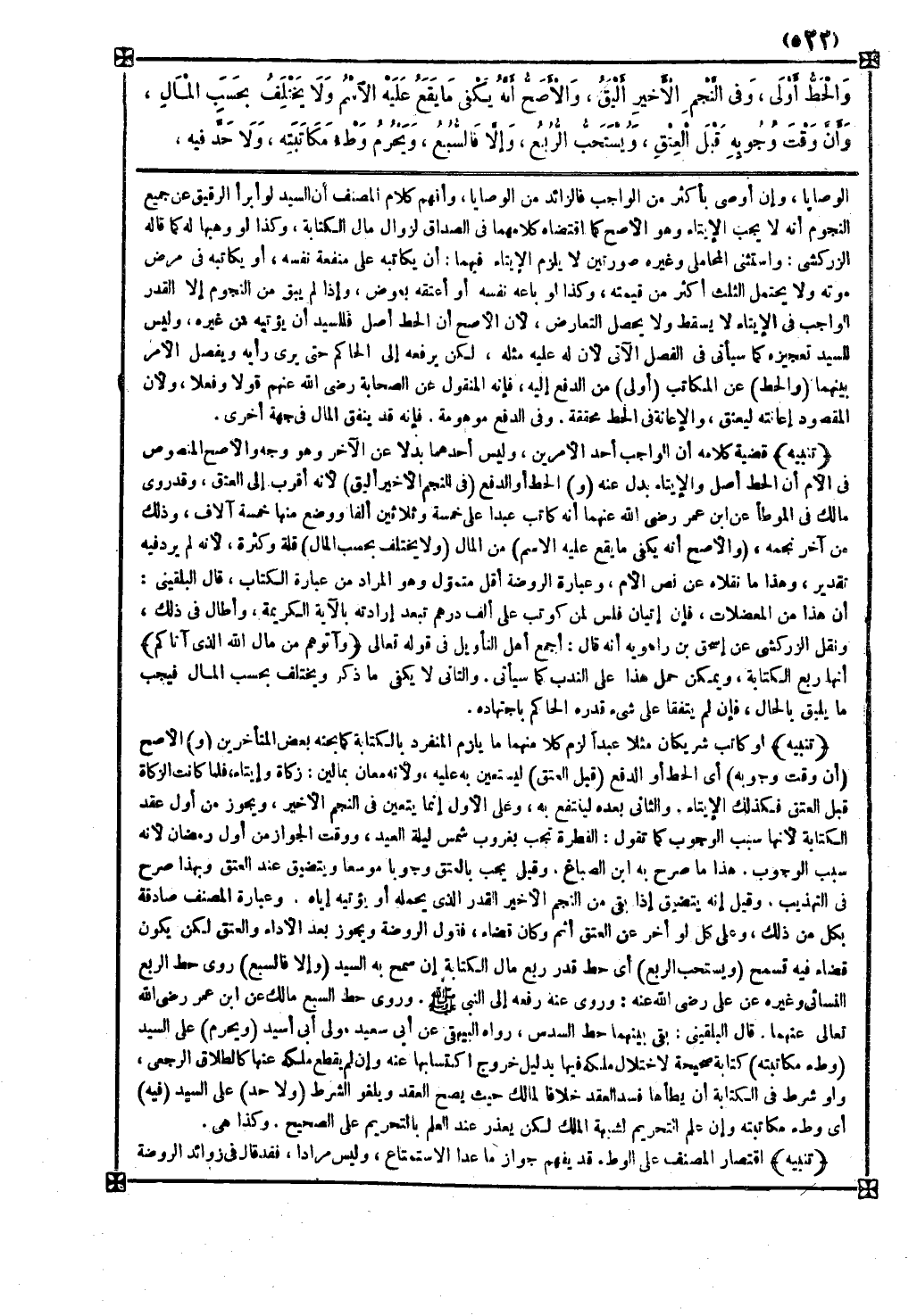 ونقل الزركشي عن إسحاق بن راهويه أنه قال أجمع أهل التأويل في قوله تعالى { وآتوهم من مال الله الذي آتاكم } أنها ربع الكتابة ويمكن حمل هذا على الندب كما سيأتي
