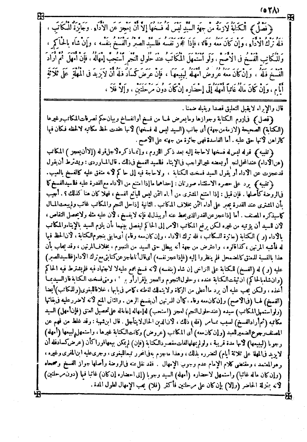 فصل في لزوم الكتابة وجوازها وما يعرض لها من فسخ أو انفساخ وبيان حكم تصرفات المكاتب وغيرها