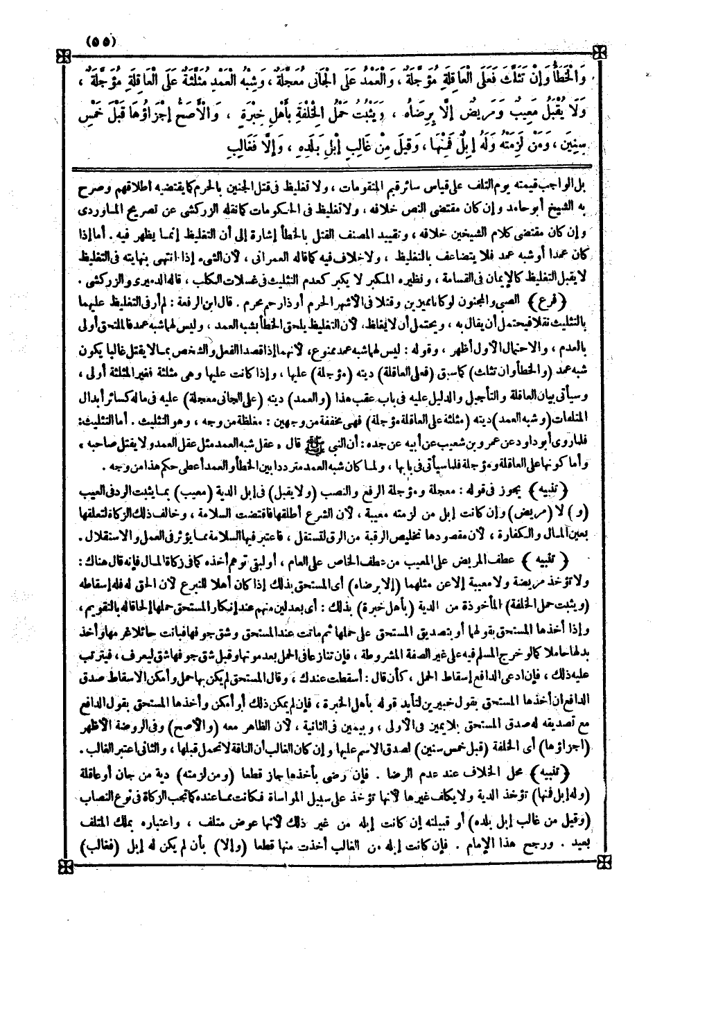 تنبيه محل الخلاف عند عدم الرضا فإن رضى بأخذها جاز قطعا (ومن لزمته) دية من جان أو عاقلة (وله إبل فمنها) تؤخذ الدية ولا يكلف غيرها لأنها تؤخذ على سبيل المواساة فكانت مما عنده كما تجب الزكاة في نوع النصاب (وقيل من غالب إبل بلده) أو قبيلته إن كانت إبله من غير ذلك لأنها عوض متلف واعتباره بملك المتلف بعيد ورجح هذا الإمام