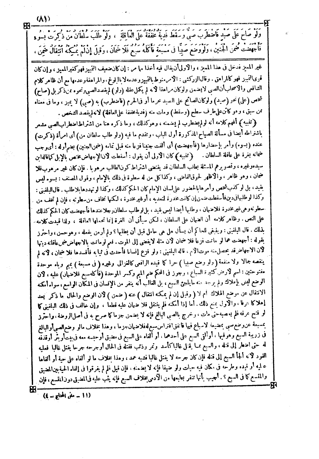 وقال الزركشي الأمر منوط بالتمييز وعدمه لا بالبلوغ والمراهقة وعدمها مع أن ظاهر كلام الشافعي والأصحاب أن الصبي لا يضمن ولو كان مراهقا لأنه لم يكمل عقله ( ولو ) لم يقصد الصبي ونحوه ممن ذكر بل ( صاح ) شخص ( على ) نحو ( صيد ) ولو كان الصائح على الصيد محرما أو في الحرم ( فاضطرب ) به ( صبي ) لا يميز وما في معناه ممن سبق وهو كائن على طرف سطح ( وسقط ) ومات منه ( فدية مخففة على العاقلة ) لأنه لم يقصد الشخص