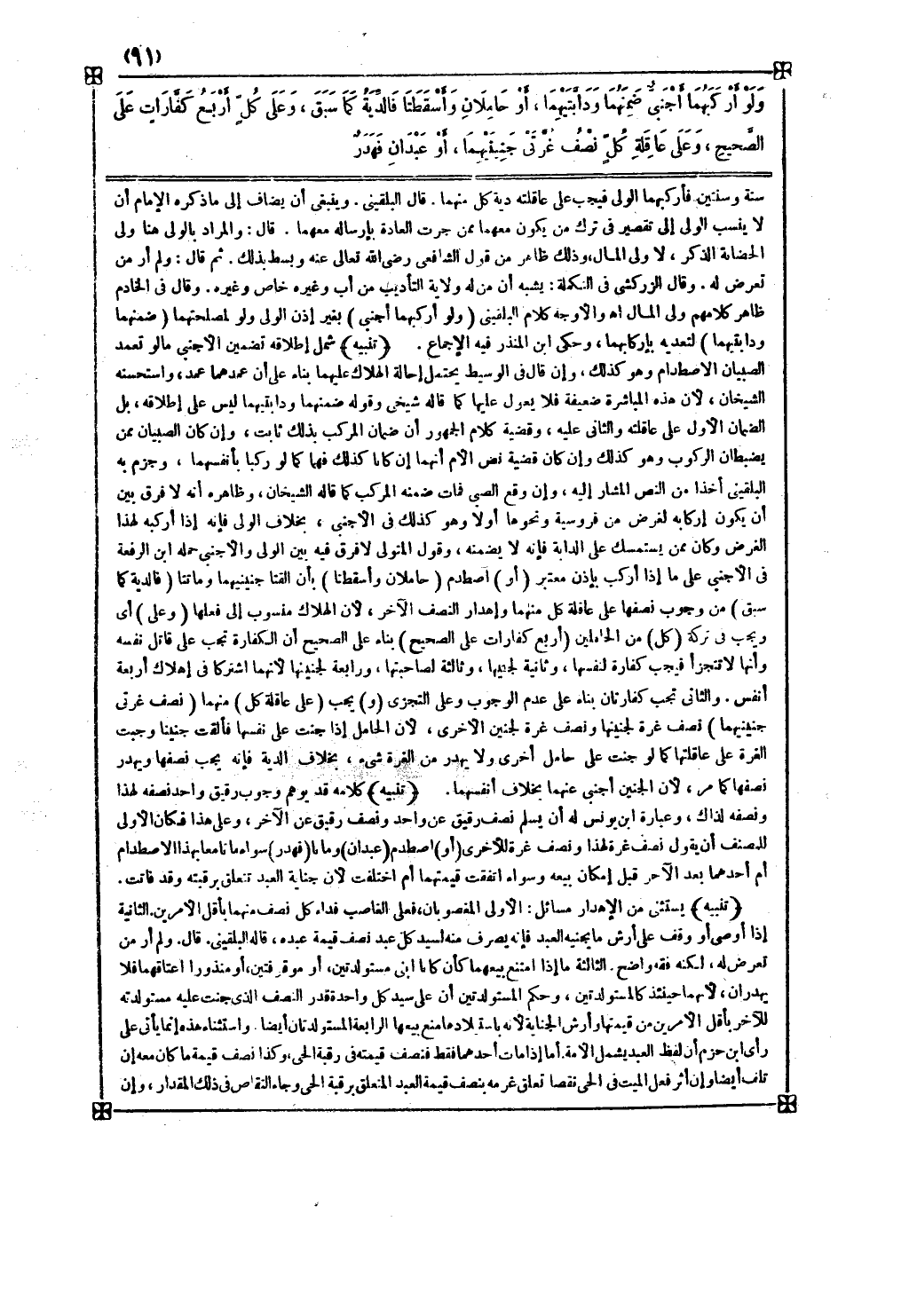 تنبيه يستثنى من الإهدار مسائل الأولى المغصوبان فعلى الغاصب فداء كل نصف منهما بأقل الأمرين