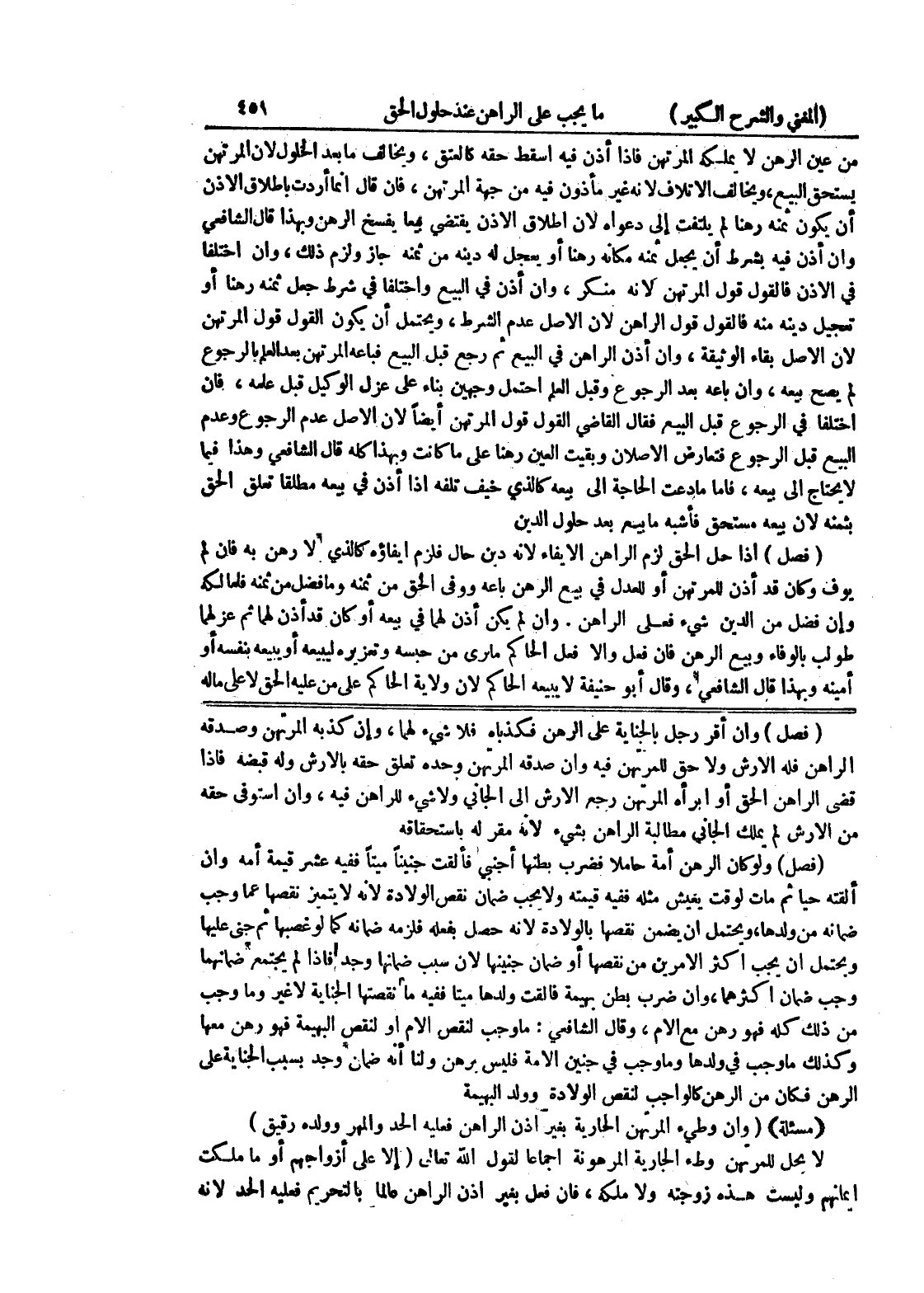 ويحتمل أن يجب أكثر الأمرين من نقصها أو ضمان جنينها لأن سبب ضمانها وجد فإذا لم يجتمع ضمانهما وجب ضمان أكثرهما، وان ضرب بطن بهيمة فالقت ولدها ميتاً ففيه ما نقصتها الجناية لاغير وما وجب من ذلك كله فهو رهن مع الأمر، وقال الشافعي: ما وجب لنقص الأم أو لنقص البهيمة فهو رهن معها وكذلك ما وجب في ولدها وما وجب في جنين الأمة فليس برهن ولنا أنه ضمان وجد بسبب الجناية على الرهن فكان من الرهن كالواجب لنقص الولادة وولد البهيمة {مسألة} (وإن وطئ المرتهن الجارية بغير إذن الراهن فعليه الحد والمهر وولده رقيق) لا يحل للمرتهن وطئ الجارية المرهونة إجماعاً لقول الله تعالى (إلا على أزواجهم أو ما ملكت أيمانهم وليست هذه زوجته ولا مكله، فإن فعل بغير إذن الراهن عالماً بالتحريم فعليه الحد لأنه