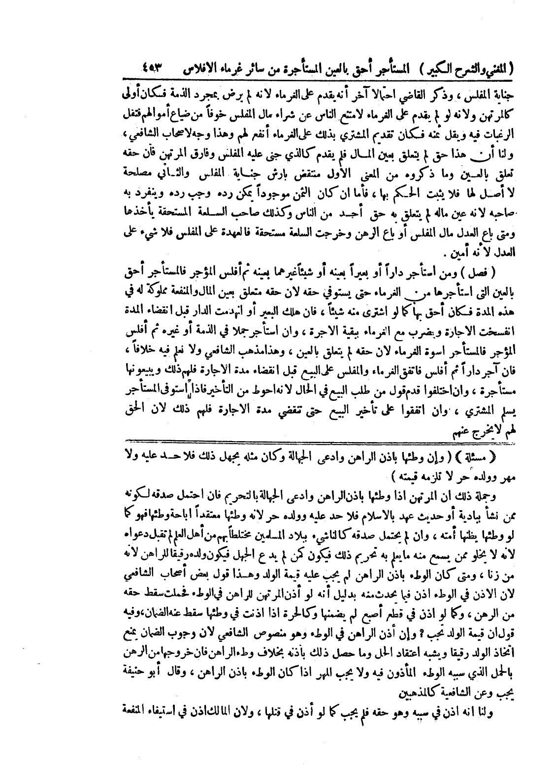 {مسألة} (وإن وطئها بإذن الراهن وادعى الجهالة وكان مثله بجهل ذلك فلاحد عليه ولا مهر وولده حر لا تلزمه قيمته) وجملة ذلك أن المرتهن إذا وطئها بإذن الراهن وادعى الجهالة بالتحريم فإن احتمل صدقة لكونه ممن نشأ ببادية أو حديث عهد بالإسلام فلاحد عليه وولده حر لأنه وطئها معتقداً إباحة وطئها فهو كما لو وطئها يظنها أمته، وإن لم يحتمل صدقة كالناشئ ببلاد المسلمين مختلطاً بهم من أهل العلم لم تقبل دعواه لأنه لا يخلو ممن يسمع منه ما يعلم به تحريم ذلك فيكون كمن لم يدع الجهل فيكون ولده رقيقا للراهن لأنه من زنا، ومتى كان الوطئ بإذن الراهن لم يجب عليه قيمة الولد وهذا قول بعض أصحاب الشافعي لأن الإذن في الوطئ إذن فيما يحدث منه بدليل أنه لو أذن المرتهن للراهن في الوطئ فحملت سقط حقه من الرهن، وكما لو أذن في قطع أصبع لم يضمنها وكالحرة إذا أذنت في وطئها سقط عنه الضمان، وفيه قول أن قيمة الولد تجب؟ وإن أذن الراهن في الوطئ وهو منصوص الشافعي لأن وجوب الضمان يمنع اتخاذ الولد رقيقا ويشبه اعتقاد الحل وما حصل ذلك بإذنه بخلاف وطئ الراهن فإن خروجها من الرهن بالحمل الذي سببه الوطئ المأذون فيه ولا يجب المهر إذا كان الوطئ بإذن الراهن، وقال أبو حنيفة يجب وعن الشافعية كالمذهبين ولنا أنه أذن في سببه وهو حقه فلم يجب كما لو أذن في قتلها، ولأن المالك أذن في استيفاء المنفعة