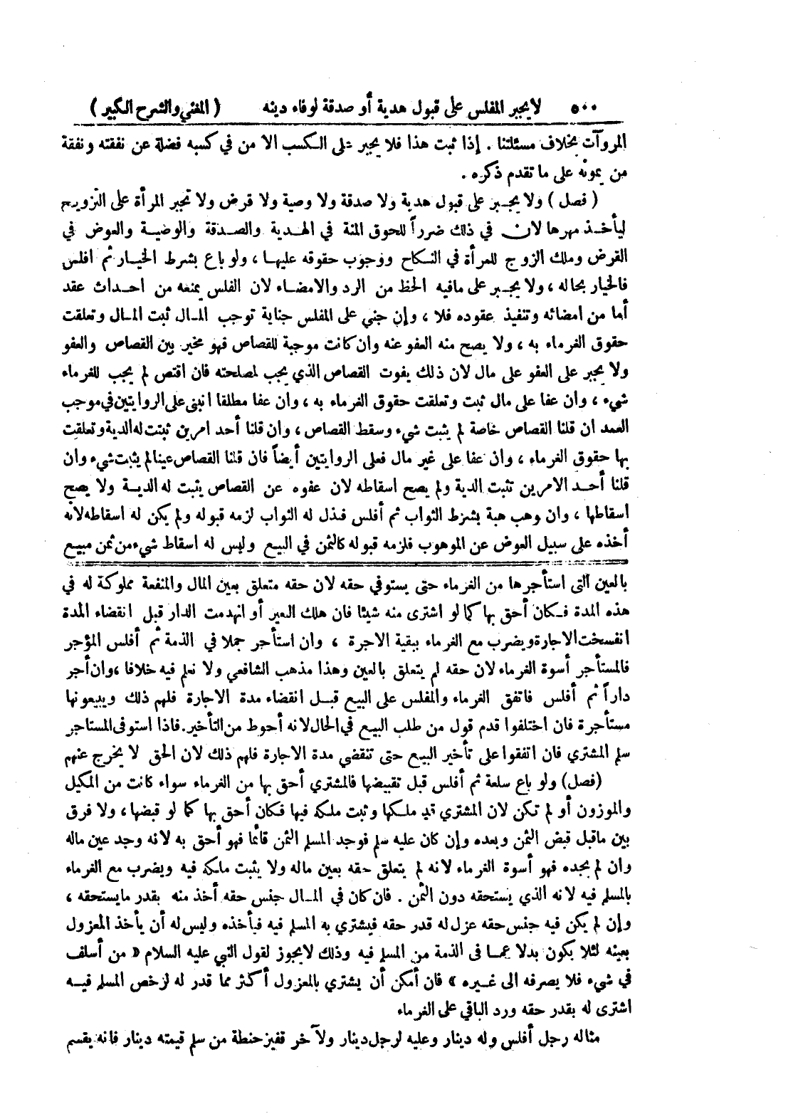 (فصل) ولو باع سلعة ثم أفلس قبل تقبيضها فالمشتري أحق بها من الغرماء سواء كانت من المكيل والموزون أو لم تكن لأن المشتري قد ملكها وثبت ملكه فيها فكان أحق بها كما لو قبضها، ولا فرق بين ما قبل قبض الثمن وبعده وإن كان عليه سلم فوجد المسلم الثمن قائماً فهو أحق به لأنه وجد عين ماله وإن لم يجده فهو أسوة الغرماء لأنه لم يتعلق حقه بعين ماله ولا يثبت ملكه فيه ويضرب مع الغرماء بالمسلم فيه لأنه الذي يستحقه دون الثمن.