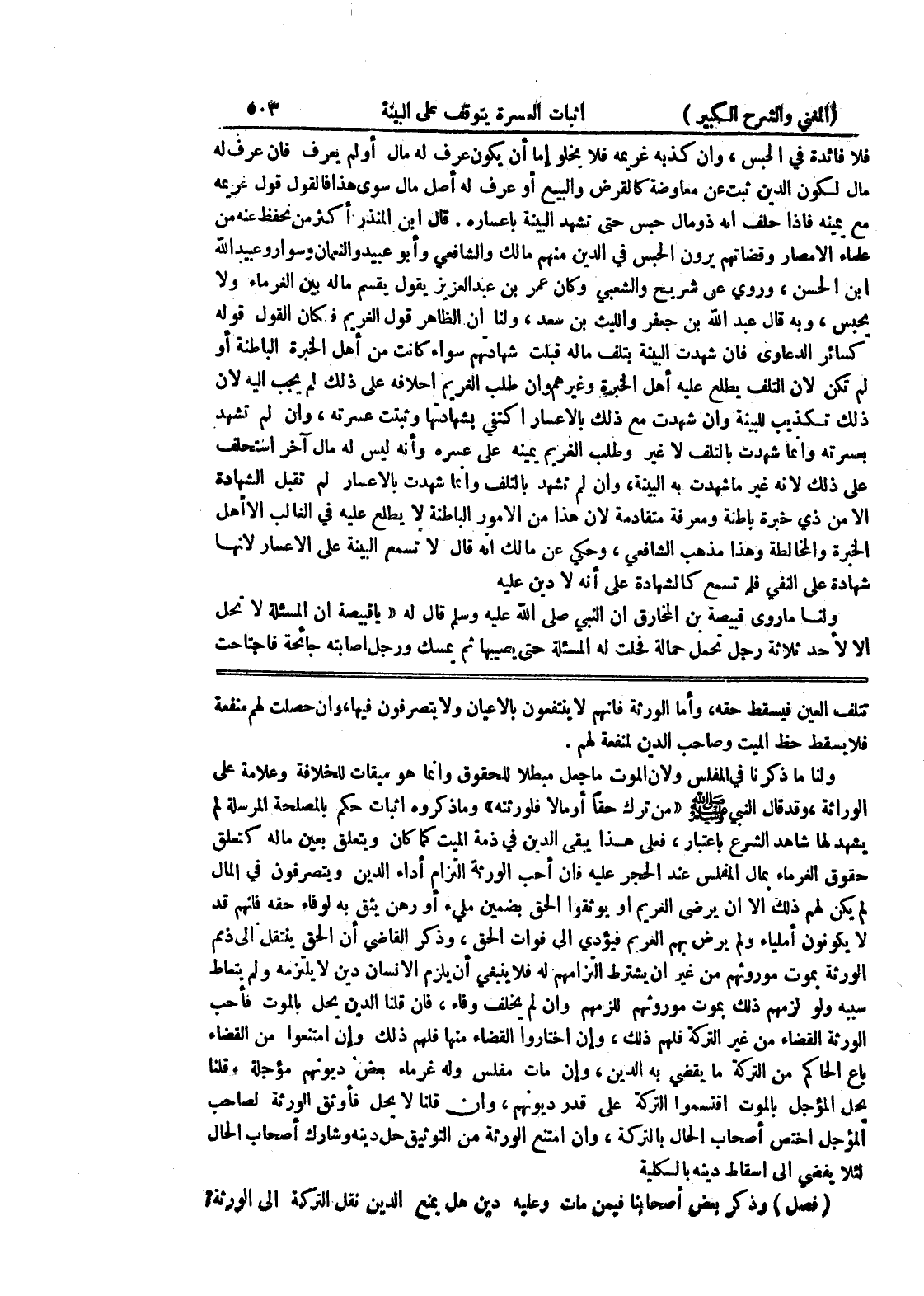 ولنا ما ذكرنا في المفلس ولأن الموت ما جعل مبطلاً للحقوق وإنما هو ميقات للخلافة وعلامة على الوراثة، وقد قال النبي صلى الله عليه وسلم " من ترك حقاً أو مالا فلورثته " وما ذكروه إثبات حكم بالمصلحة المرسلة لم يشهد لها شاهد الشرع باعتبار، فعلى هذا يبقى الدين في ذمة الميت كما كان ويتعلق بعين ماله كتعلق حقوق الغرماء بمال المفلس عند الحجر عليه فإن أحب الورثة التزام أداء الدين ويتصرفون في المال لم يكن لهم ذلك إلا أن يرضى الغريم أو يوثقوا الحق بضمين ملئ أو رهن يثق به لوفاء حقه فإنهم قد لا يكونون أملياء ولم يرض بهم الغريم فيؤدي إلى فوات الحق، وذكر القاضي أن الحق ينتقل إلى ذمم الورثة بموت موروثهم من غير أن يشترط التزامهم له فلا ينبغي أن يلزم الإنسان دين لا يلتزمه ولم يتعاط سببه ولو لزمهم ذلك بموت موروثهم للزمهم وإن لم يخلف وفاء، فإن قلنا الدين يحل بالموت فأحب الورثة القضاء من غير التركة فلهم ذلك، وإن اختاروا القضاء منها فلهم ذلك وإن امتنعوا من القضاء باع الحاكم من التركة ما يقضي به الدين، وإن مات مفلس وله غرماء بعض ديونهم مؤجلة، قلنا يحل المؤجل بالموت اقتسموا التركة على قدر ديونهم، وإن قلنا لا يحل فأوثق الورثة لصاحب المؤجل اختص أصحاب الحال بالتركة، وإن امتنع الورثة من التوثيق حل دينه وشارك أصحاب الحال لئلا يفضي إلى إسقاط دينه بالكلية (فصل) وذكر بعض أصحابنا فيمن مات وعليه دين هل يمنع اليد نقل التركة إلى الورثة؟