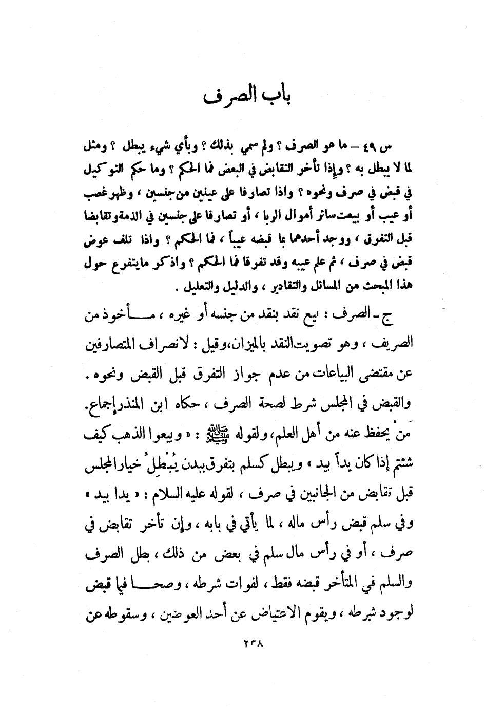 الخامس: أن يتقابضا قبل تفرقهما؛ لأنه بيع تمر بتمر، فاعتبرت فيه أحكامه إلا ما استثناه الشرع مما لم يمكن اعتباره في العرايا، والقبض فيما على النخلة بالتخلية، وفي التمر باكتياله؛ فإن كان حاضرًا في المجلس اكتاله، وإن كان غائبًا مشيًا إلى التمر فتسلم، وإن قبضه أولاً ثم مشيا إلى النخلة فتسلمها جاز. وعلم مما تقدم أن الرطب لو كان مجذوذًا لم يجز بيعه بالتمر، للنهي عنه، والرخصة وردت في ذلك ليؤخذ شيئًا فشيئًا، لحاجة المشتري إلى التفكه، لا لحاجة البائع وإن المشتري إن لم يكن محتاجًا للرطب، أو كان محتاجًا إليه ومعه نقد، لم تصح، ولا يعتبر في العرية كونها موهوبة لبائع على المذهب، وإذا ترك العرية حتى أثمرت بطل البيع.