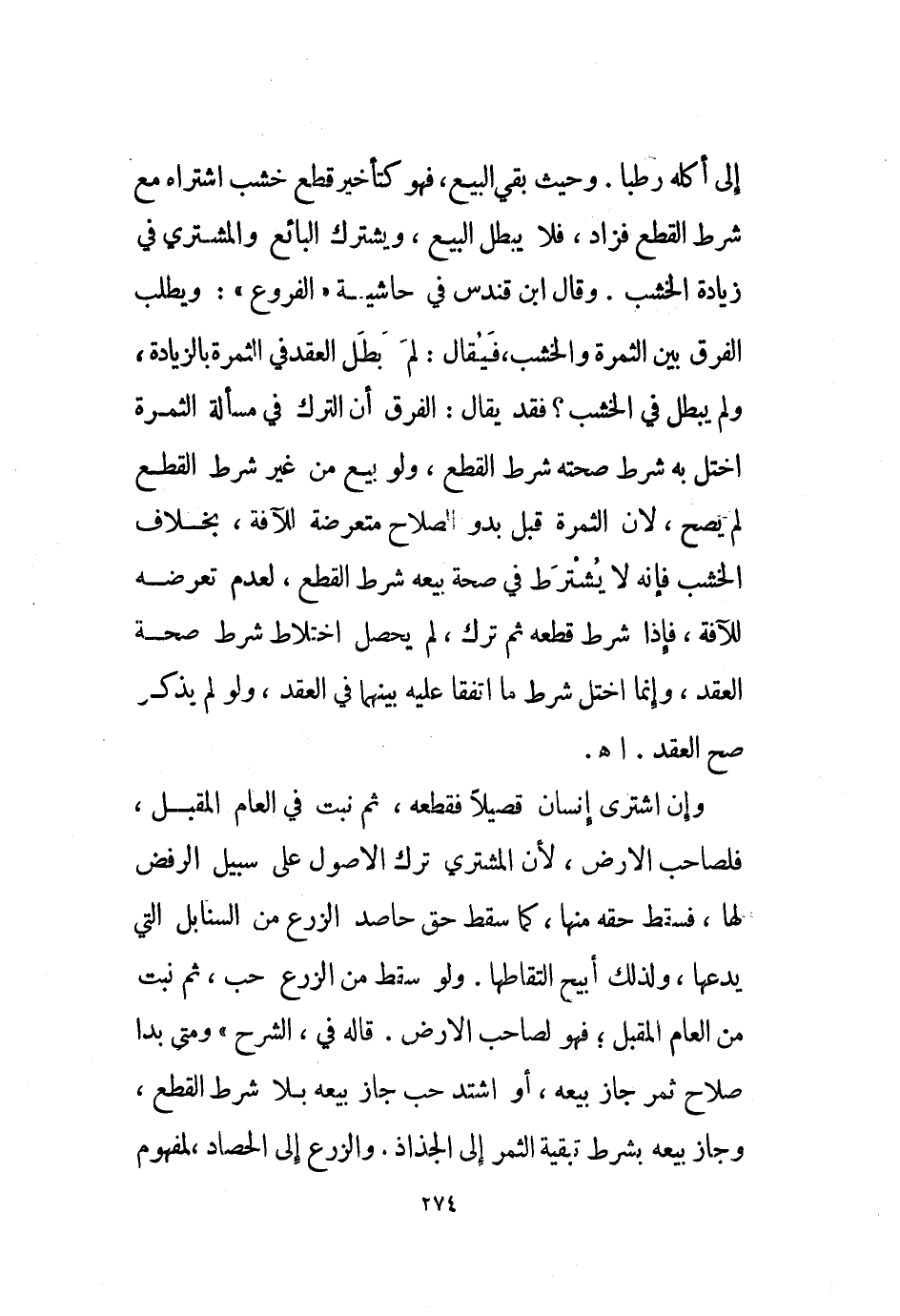 (فرع) : البستان: اسْمٌ لأرض وشجر وحائط، بدليل أن الأرض المكشوفة لا تسمى بذلك، ومن قال: بعتك هذه الأرض، وثلث بنائها، أو: بعتك الأرض وثلث غراسها، أو بعتك هذا البستان وثلث غراسه، لم يدخل في البيع من البناء والغراس إلا الجزء المسمى، لقرينه العطف وإن كان في الأرض زرع يجز مرة بعد أخرى، كرطبة وهي القصة؛ فإن يبست فهي قت، وكالبقول وثمر ونعناع وقثاء وباذنجان ودباء، أو يتكرر زهره، كورد