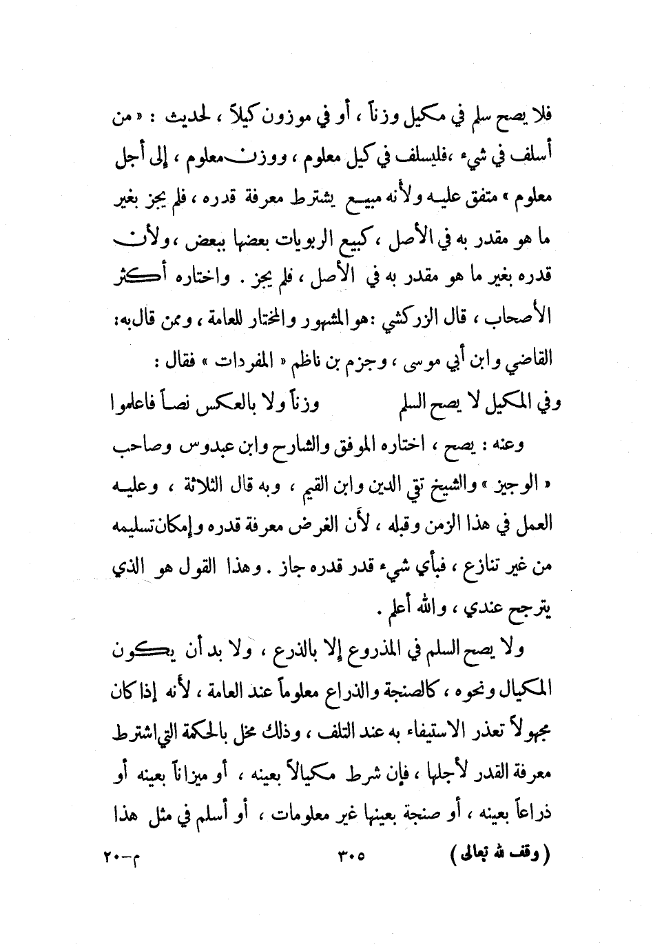 ولا يحتاج أيضًا في السلم في الطير، لذكر موضع قطع، إلا أن يكون الطير كبيرًا يأخذ منه بعضه، كخمسة أرطال من لحم نعام، فيبين موضع القطع، لاختلاف العظم، ويذكر في سمك إذا أسلم فيه النوع والنهر، ويذكر نحو سمن وهزال، وصغر وطري وملح، ولا يقبل رأس وذنب، بل يلزم المسلم أن يقبل ما بين الذنب والرأس بعظامه. ولا يصح السلم في اللحم المطبوخ والشواء على الصحيح من المذهب، وهو مذهب الشافعي؛ لأن ذلك يتفاوت كثيرًا وعادات الناس فيه مختلفة، فلم يمكن ضبطه، وقيل: يصح، لما ذكر في الخبز واللبأ، قدمه ابن رزين.