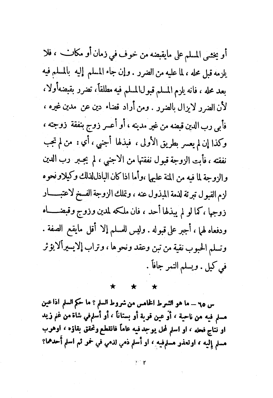 قديم، جيد أو رديء، ويبين قديم سنة أو سنتين ونحوه، وذكر سن حيوان، ويرجع في سن رقيق بالغ إليه، وإلا فقول سيد وإن جهله رجع إلى قول أهل الخبرة تقريبًا بغلبة الظن، وبذكر نوعه كضأن أو معز، ثني أو جذع، وذكر ما يميز به مختلفه، كذكر أو سمين أو معلوف أو ضدها، وذكر جنس مسلم فيه، فيقول: تمرًا أو حنطة، وذكر قدر، كقفيز أو رطل، وذكر جودة كحرير بلدي.